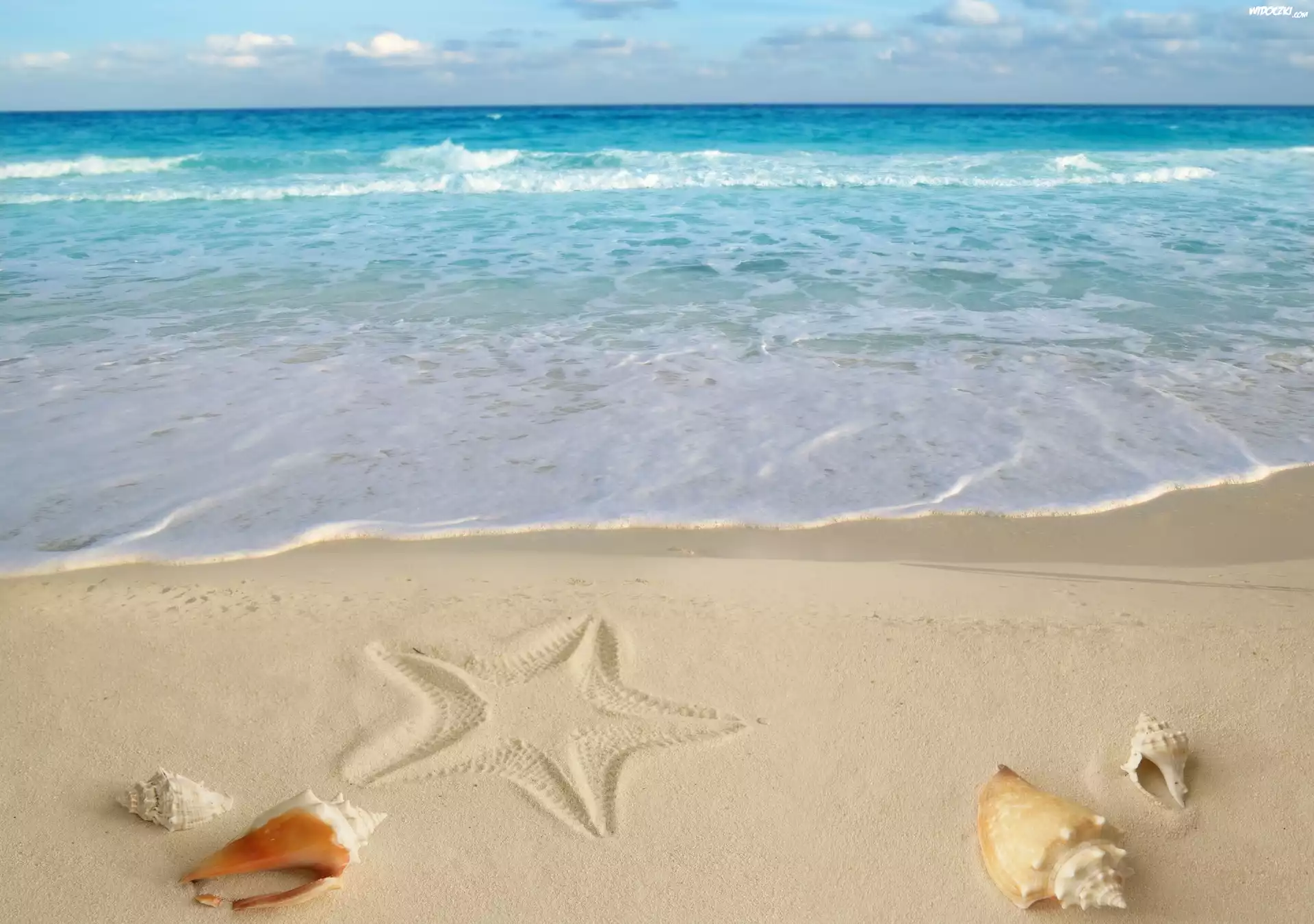 Zdjęcia, Plaża, Piasek, Muszle, Gwiazda
