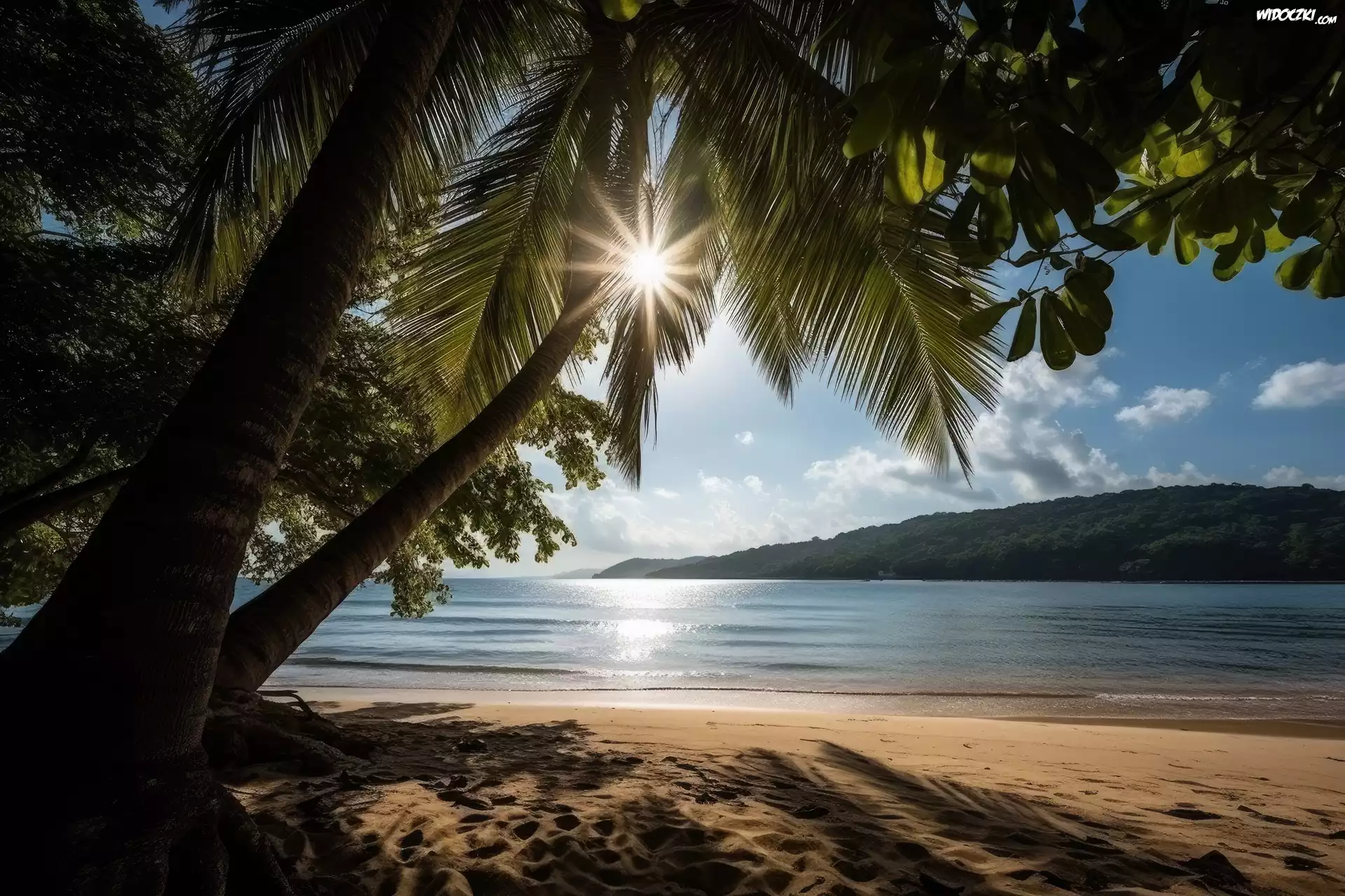 Zdjęcia, Morze, Plaża, Palma, Promienie słońca