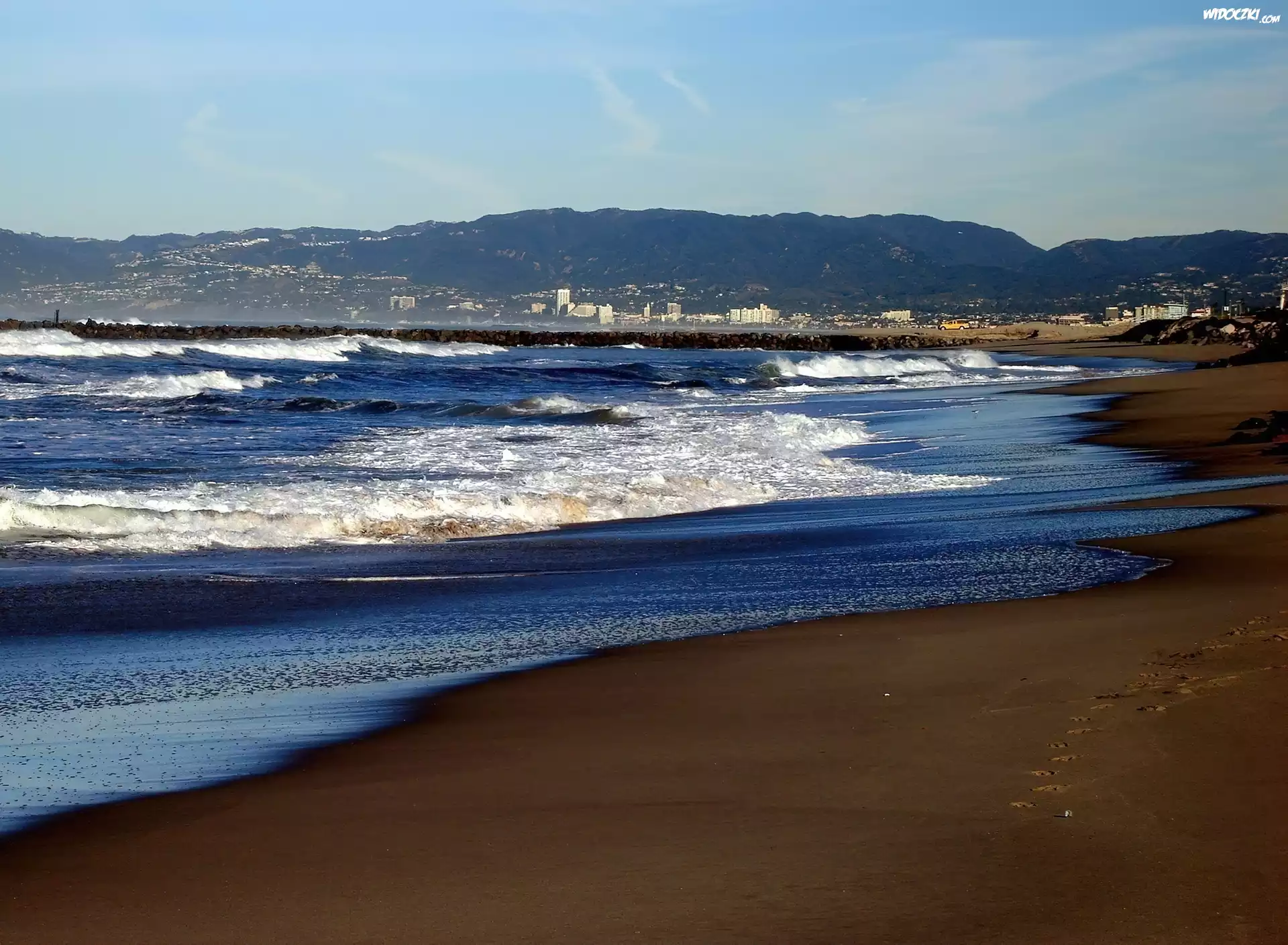 Zdjęcia, Plaża, Morze, Piasek, Fale