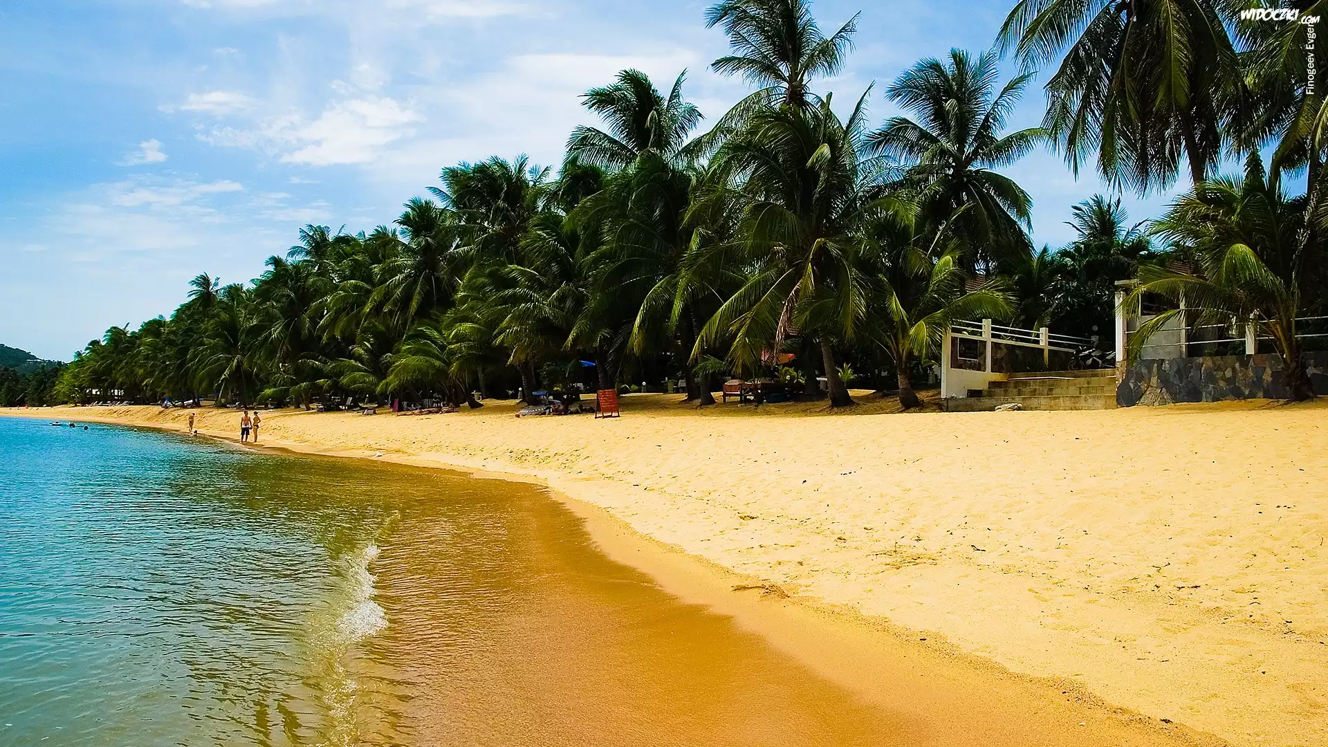 Zdjęcia, Plaża, Morze, Piasek, Palmy