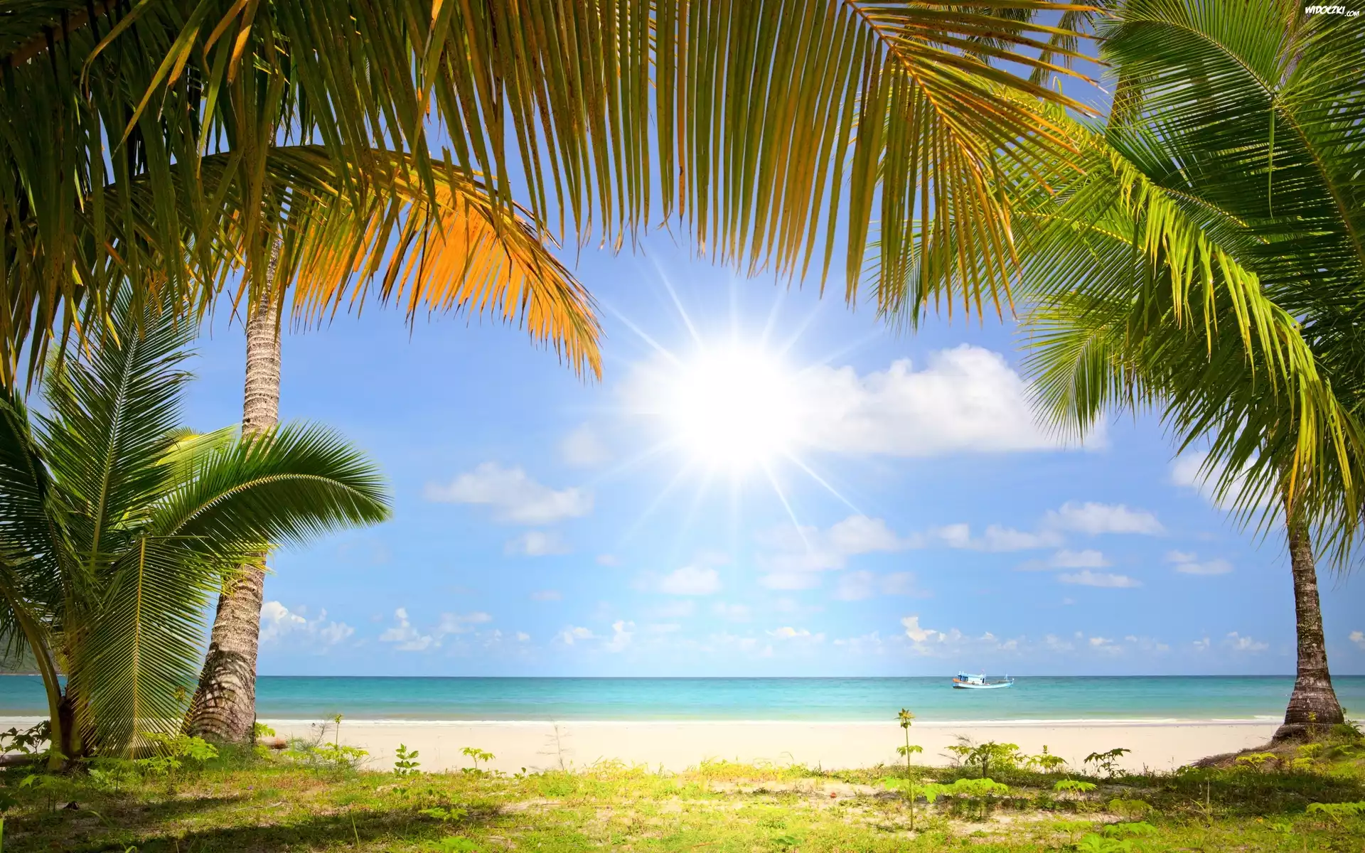 Zdjęcia, Plaża, Palmy, Przebijające, Światło