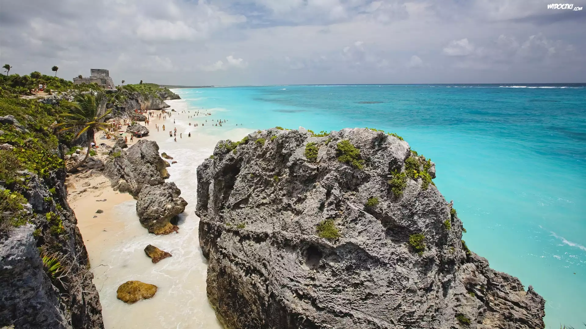 Zdjęcia, Plaża, Morze, Skała, Palmy