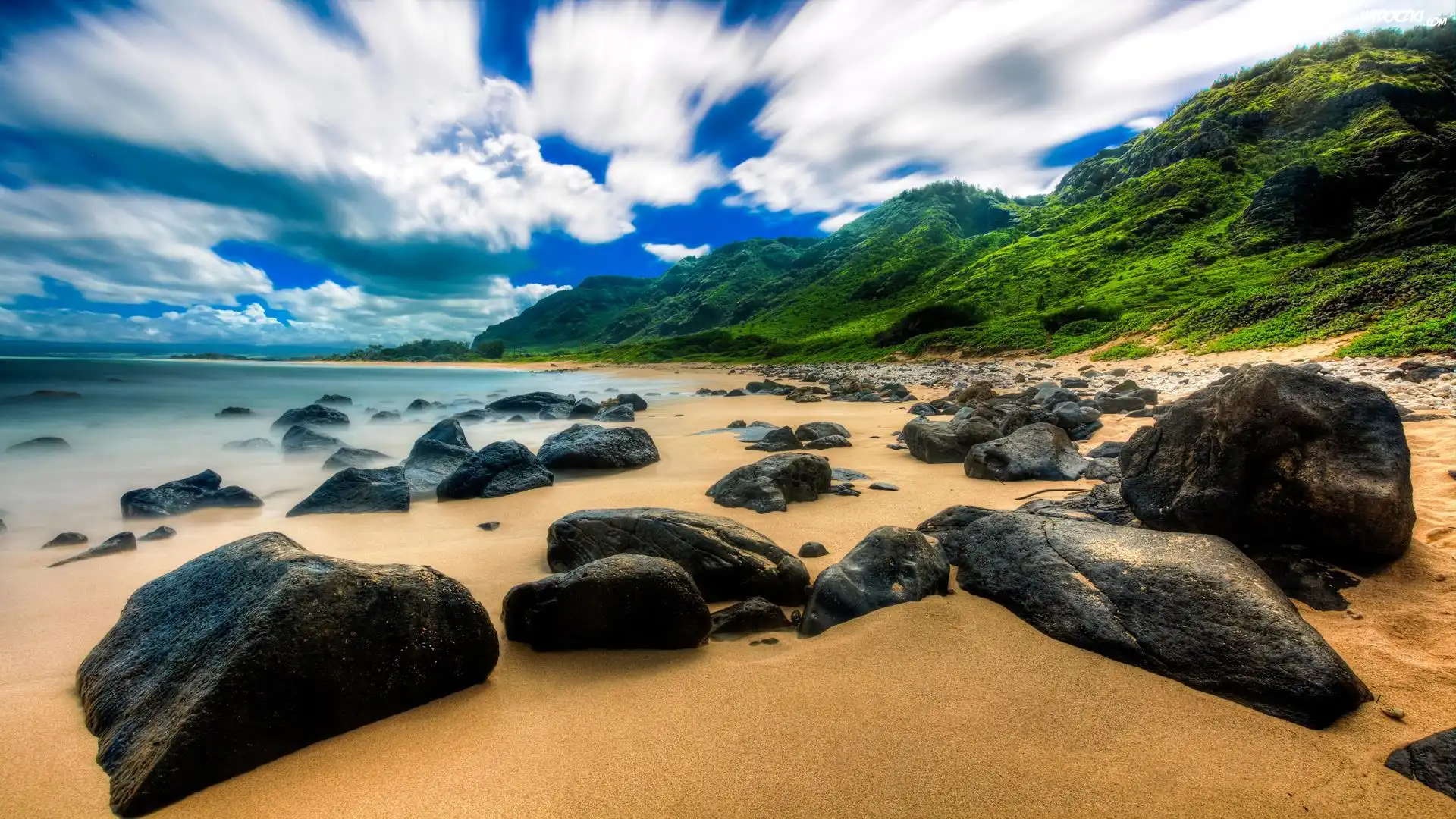 Zdjęcia, Plaża, Morze, Skały, Kamienie