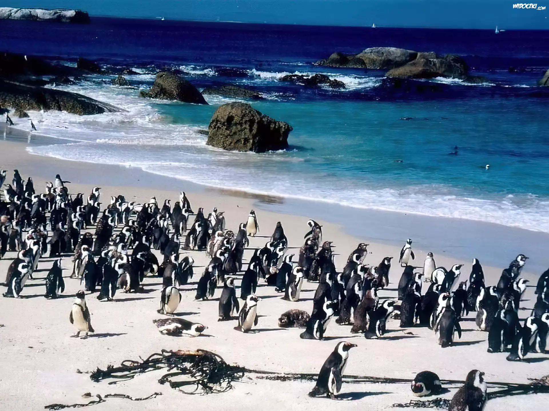 Zdjęcia, Plaża, Morze, Wybrzeże, Pingwiny