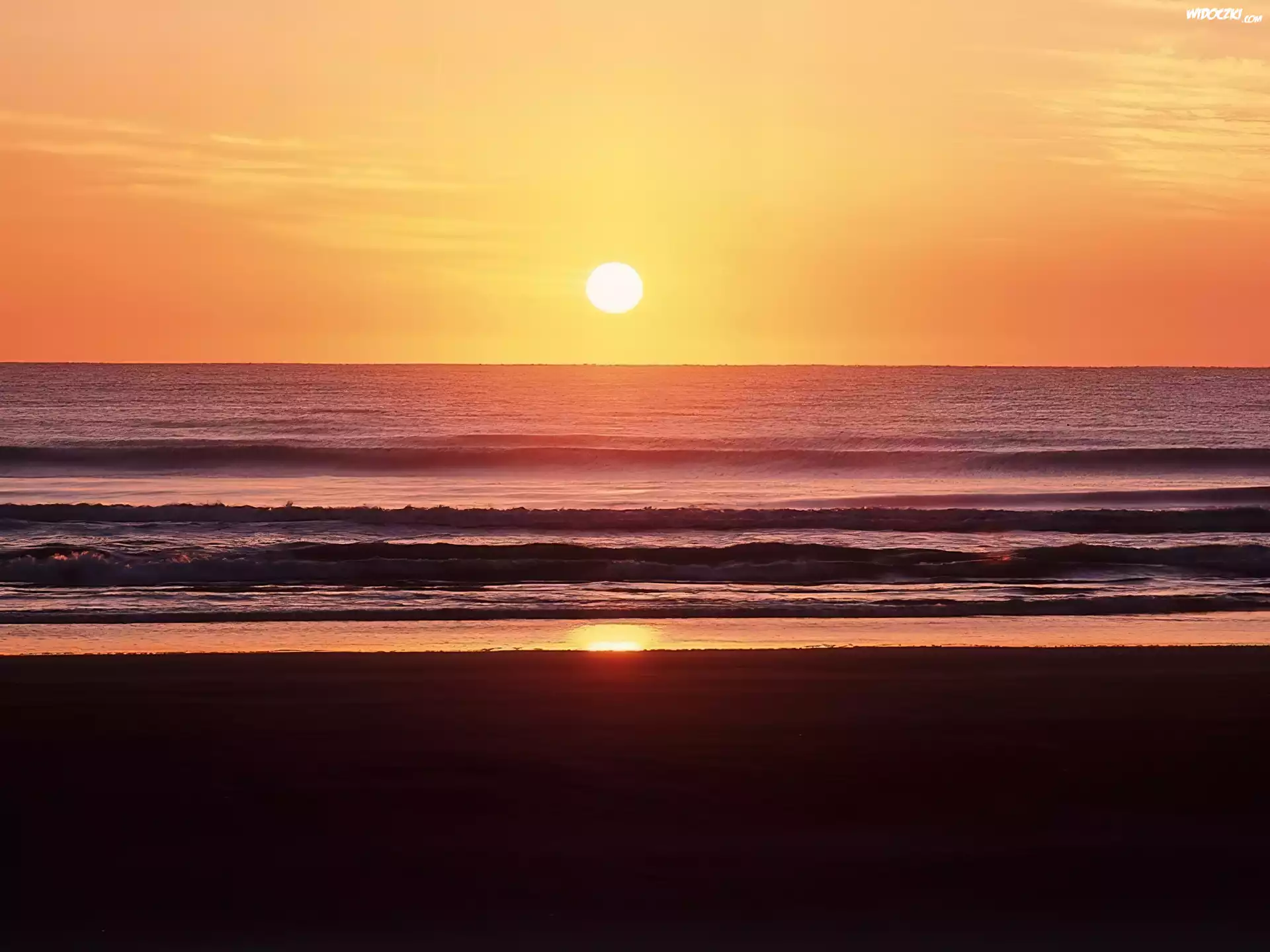Zdjęcia, Plaża, Fale, Zachód Słońca