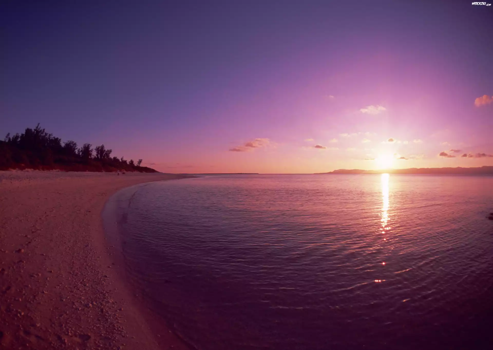 Zdjęcia, Plaża, Jezioro, Zachód, Słońca