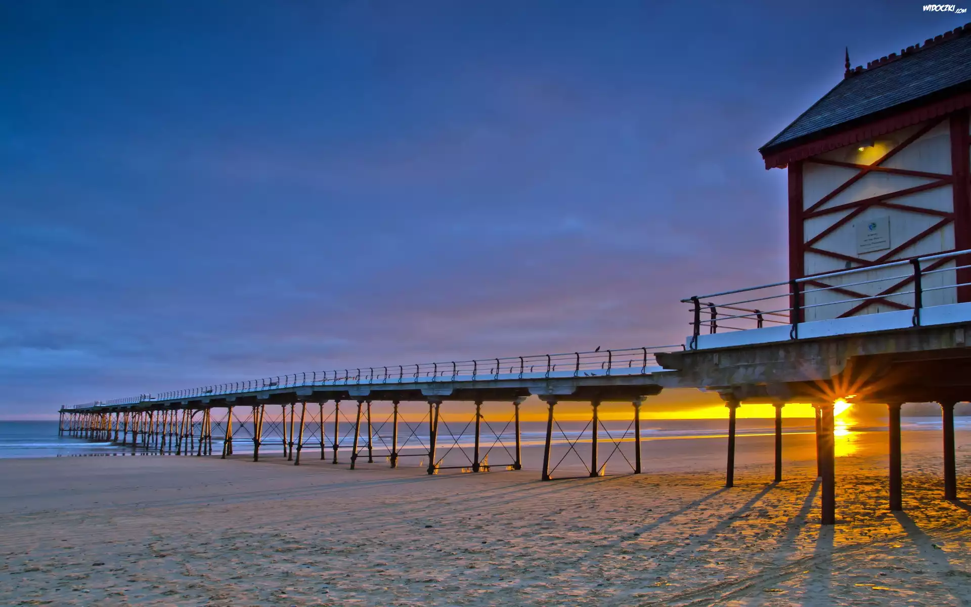 Zdjęcia, Plaża, Molo, Zachód, Słońca