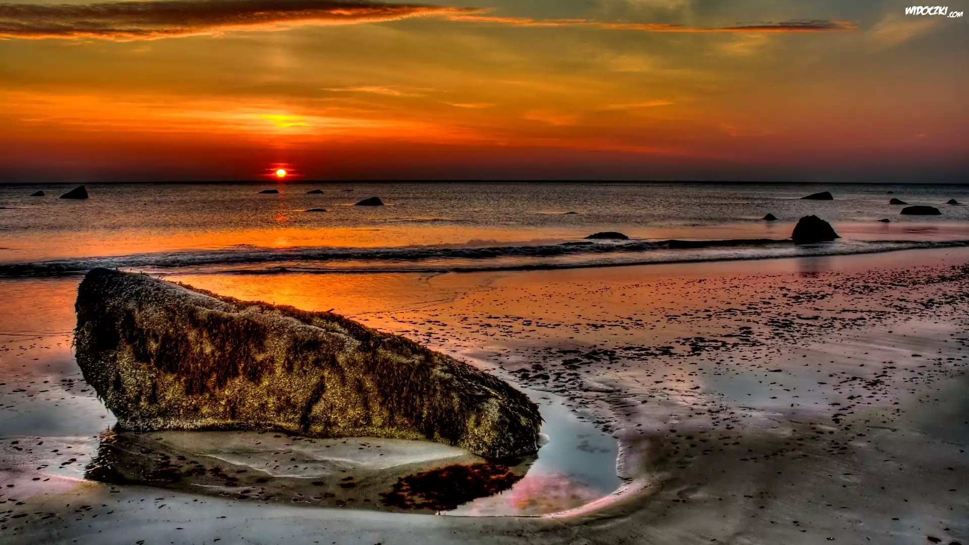 Zdjęcia, Plaża, Morze, Zachód, Słońca