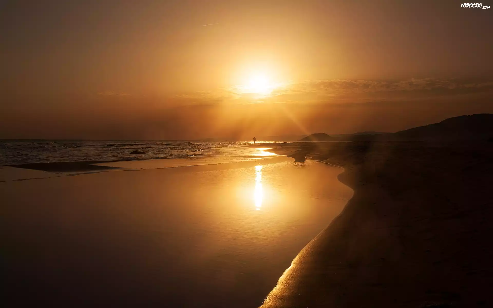 Zdjęcia, Plaża, Morze, Zachód, Słońca