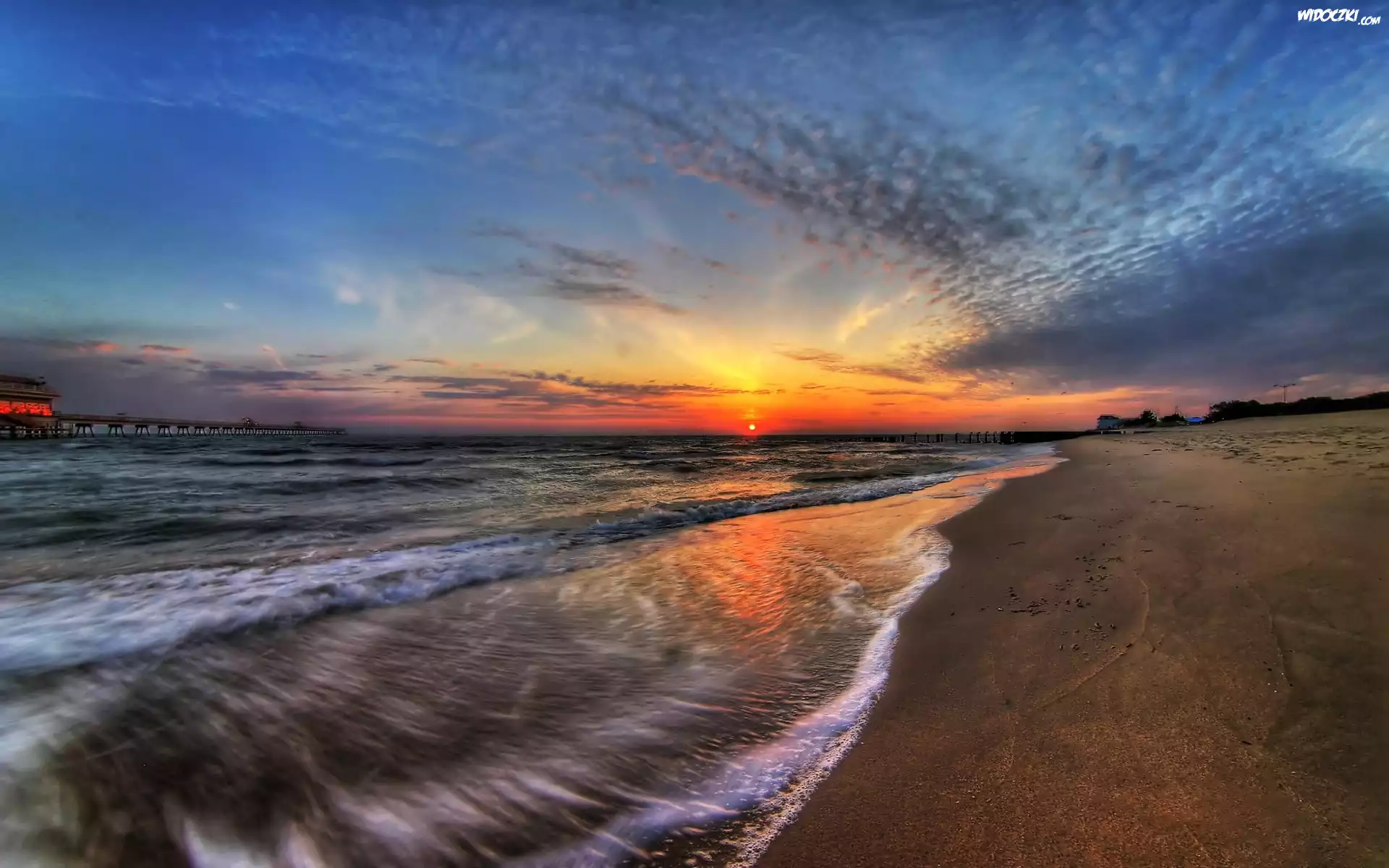 Zdjęcia, Plaża, Morze, Zachód, Słońca