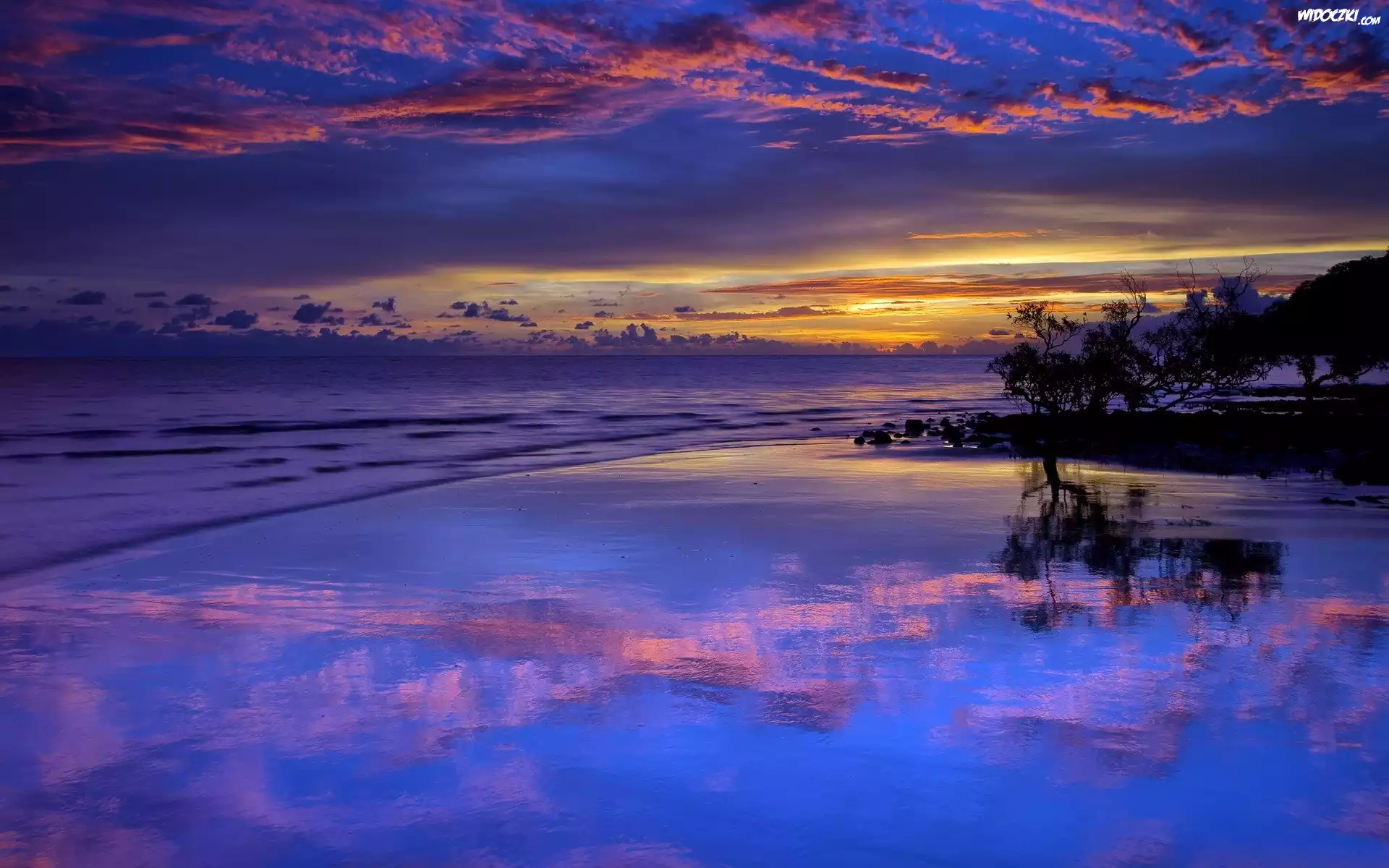 Zdjęcia, Plaża, Morze, Zachód, Słońca