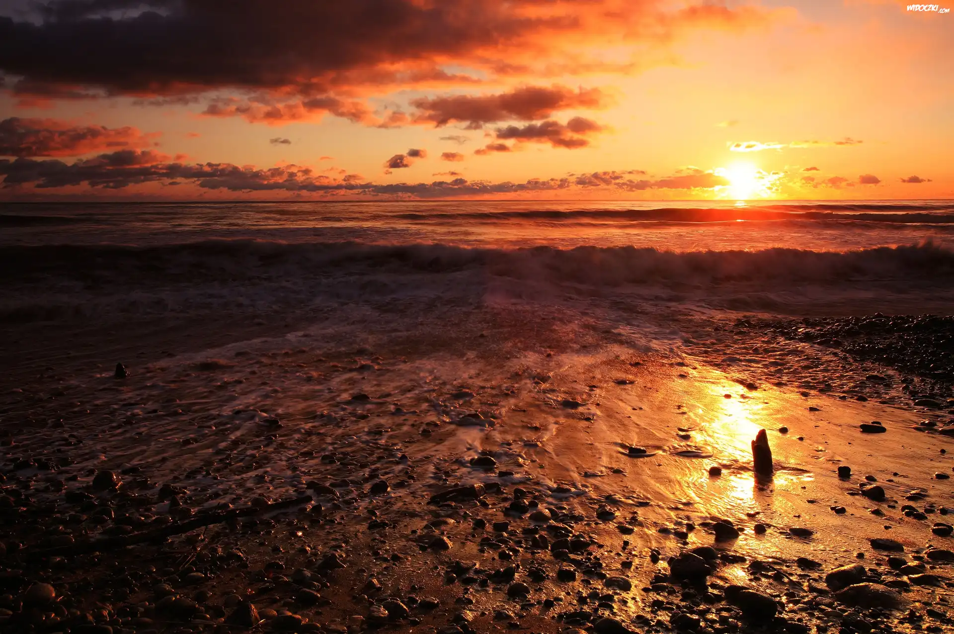 Zdjęcia, Plaża, Morze, Zachód, Słońca