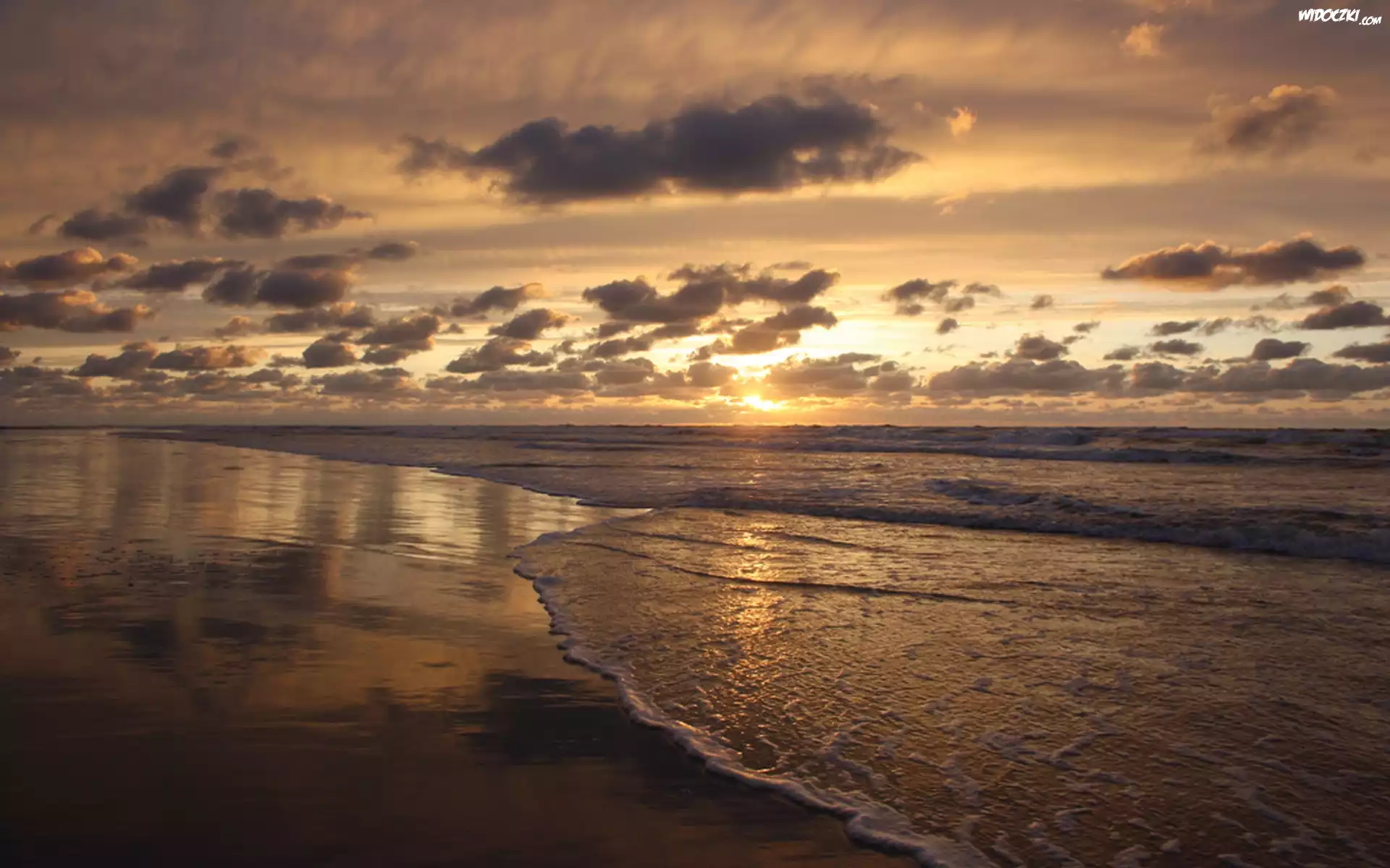 Zdjęcia, Plaża, Morze, Zachód Słońca