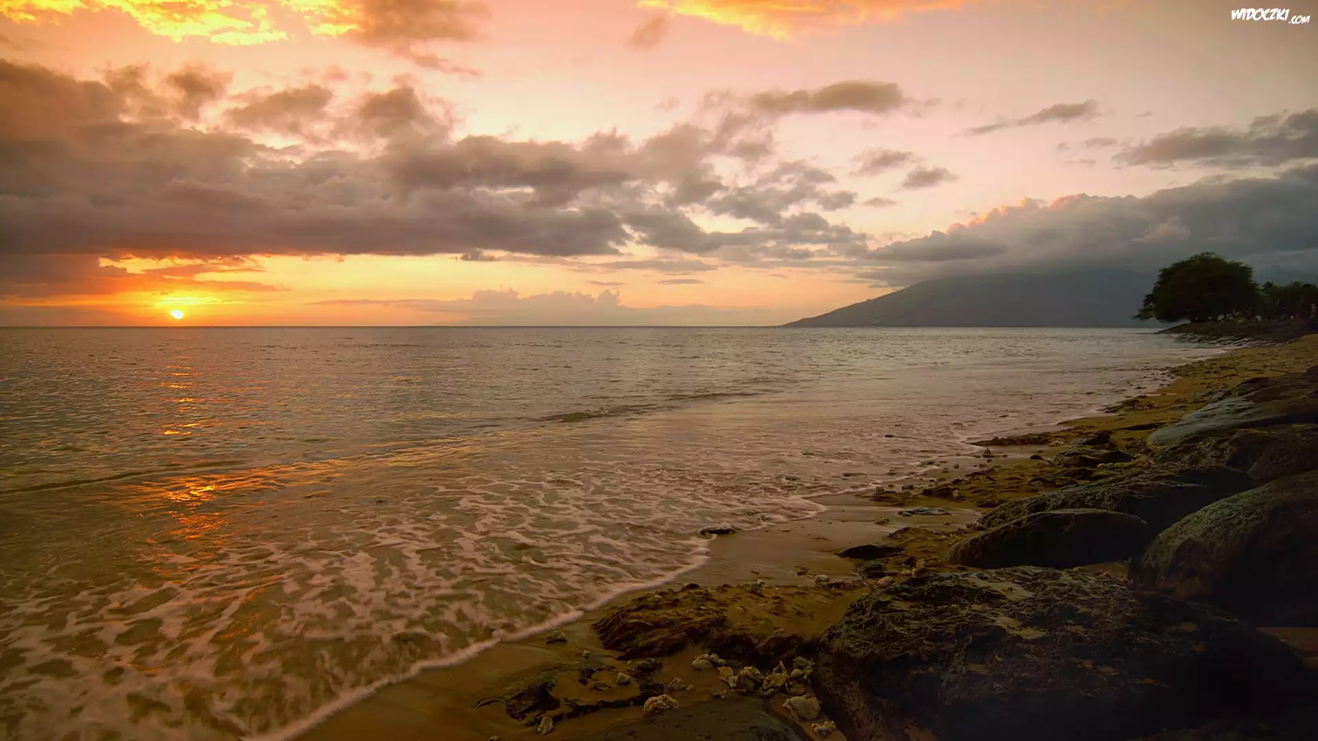 Zdjęcia, Plaża, Morze, Wybrzeże, Zachód Słońca