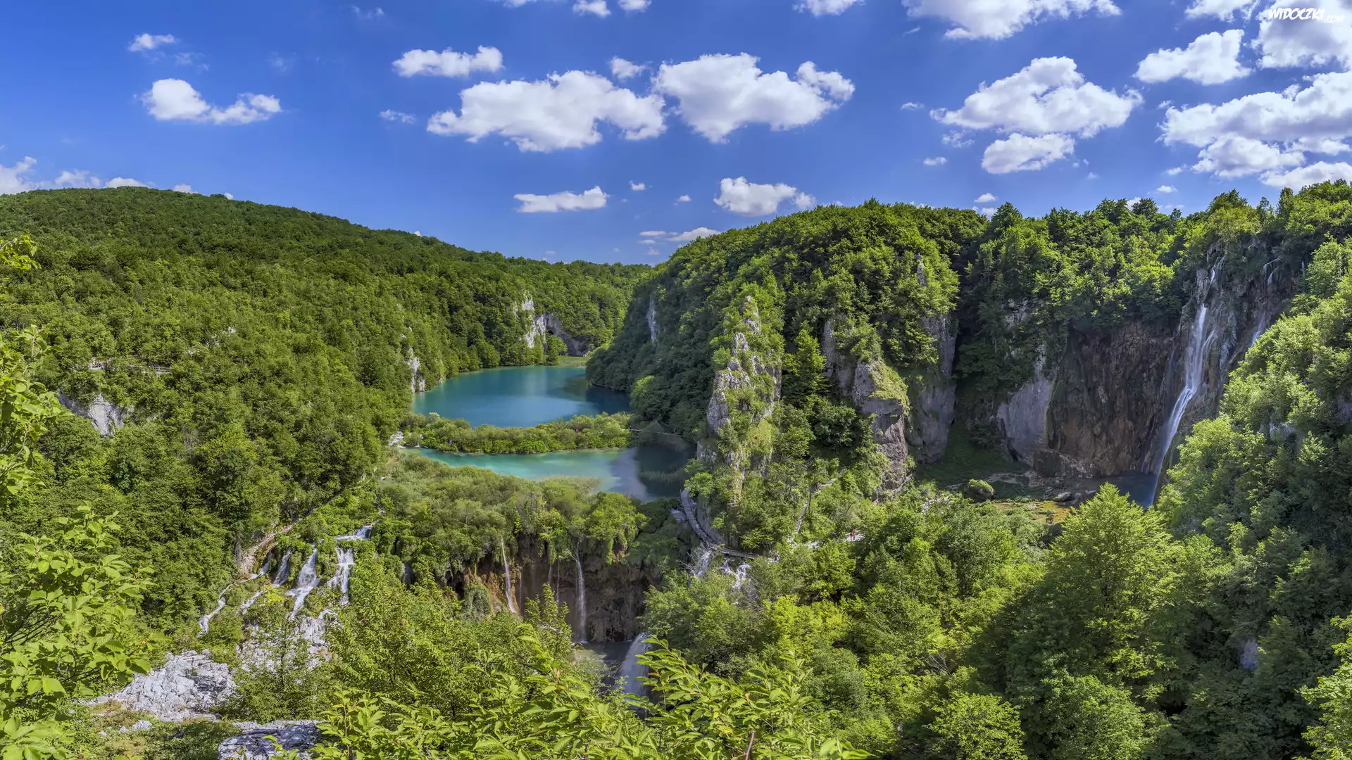 Chorwacja, Wodospady, Jeziora, Drzewa, Skały, Roślinność, Park Narodowy Jezior Plitwickich