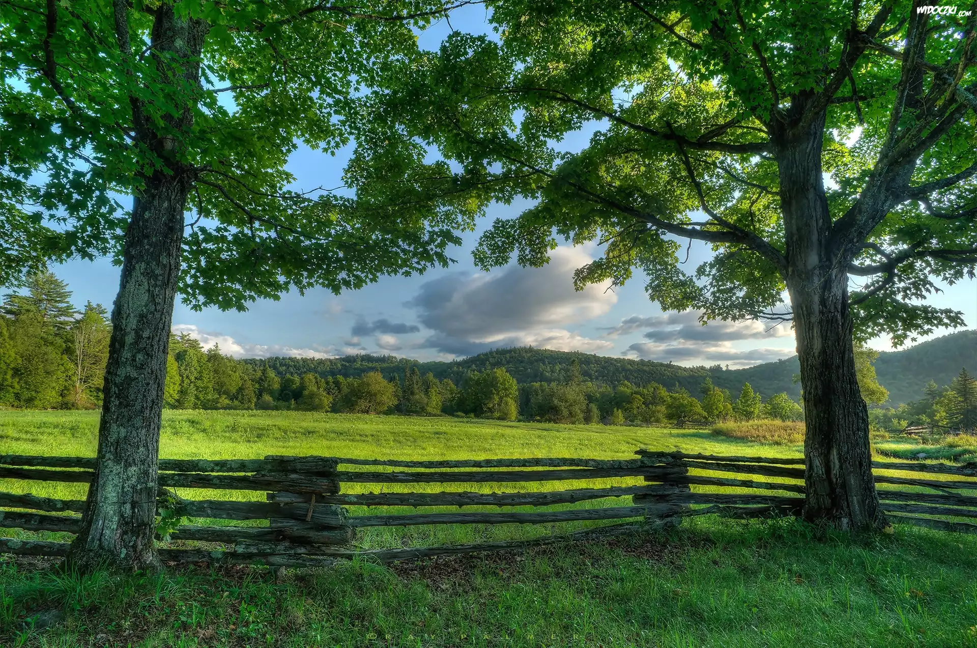 Zdjęcia, Łąka, Płot, Drzewa
