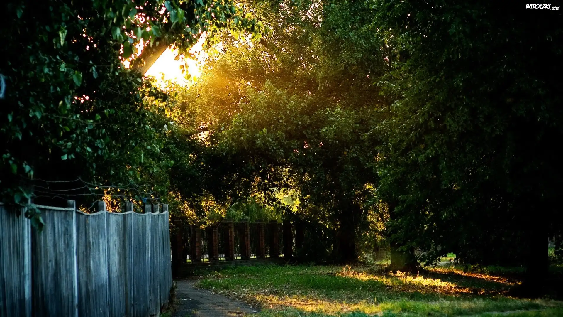 Zdjęcia, Płot, Drzewa, Dróżka, Trawnik