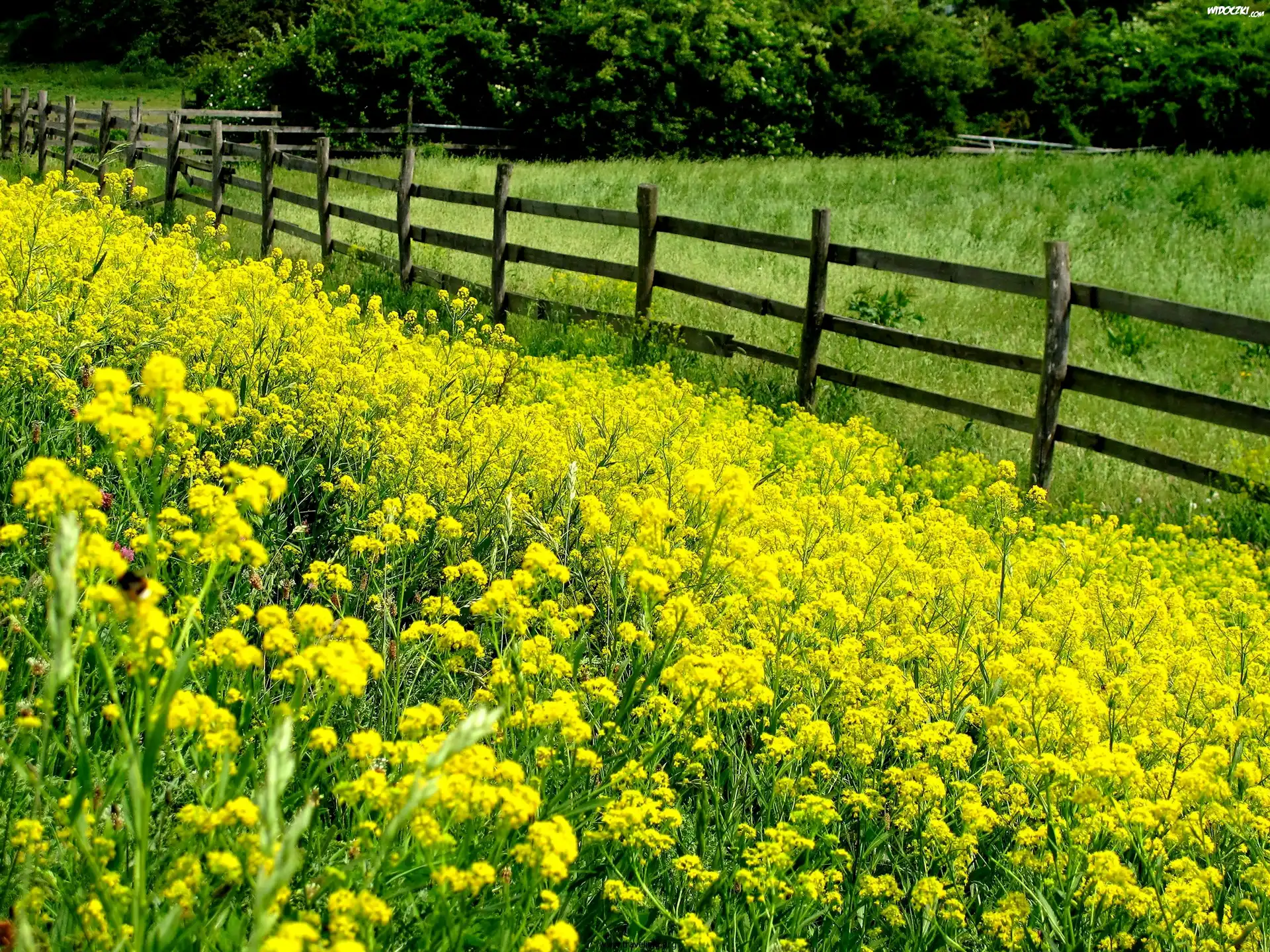 Zdjęcia, Łąka, Płotek, Drzewa
