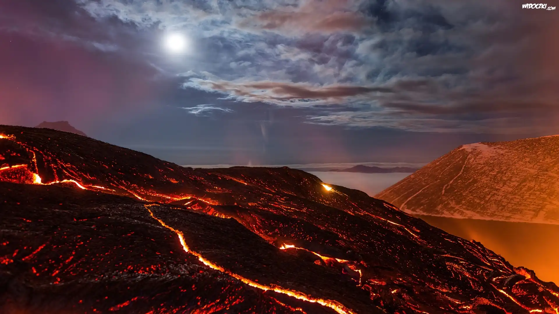 Zdjęcia, Wulkan, Płynąca, Lawa