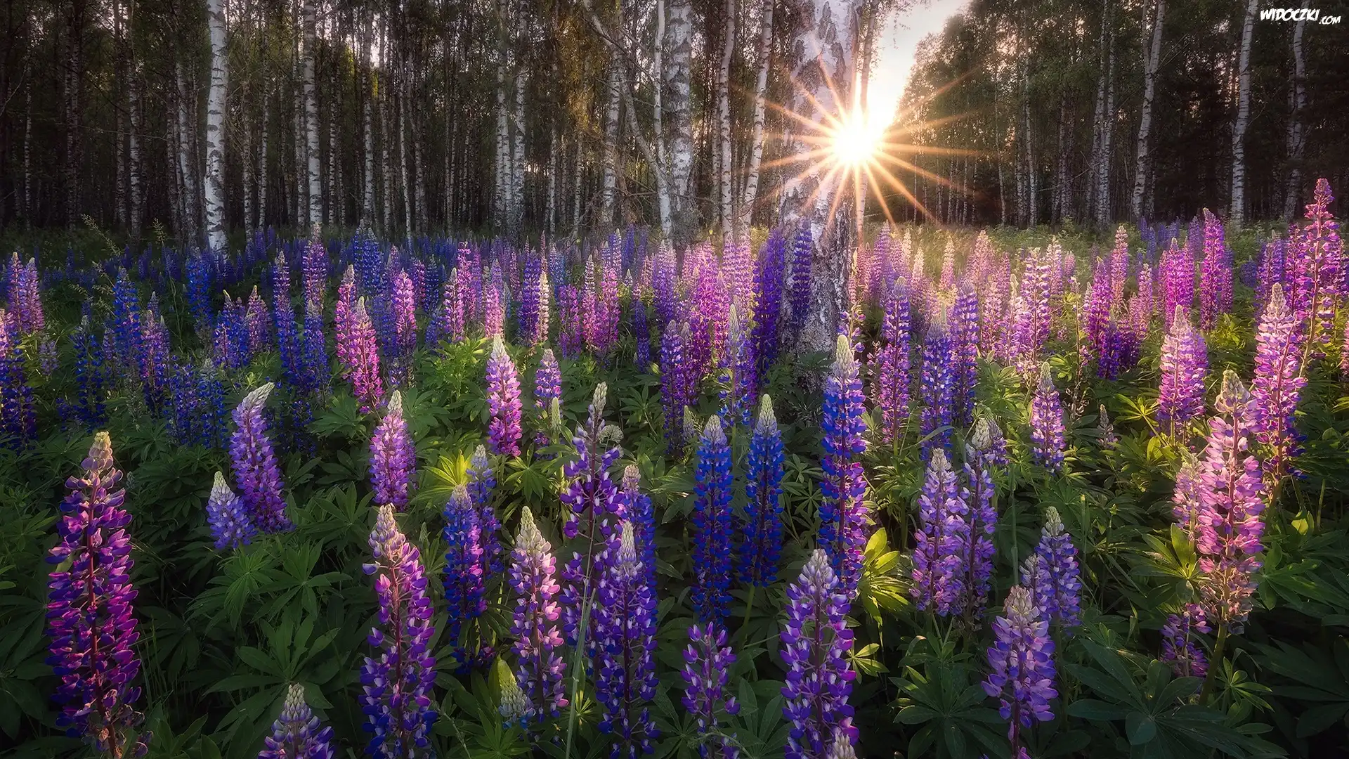 Zdjęcia, Polska, Podlasie, Łubin, Las, Drzewa, Promienie słońca