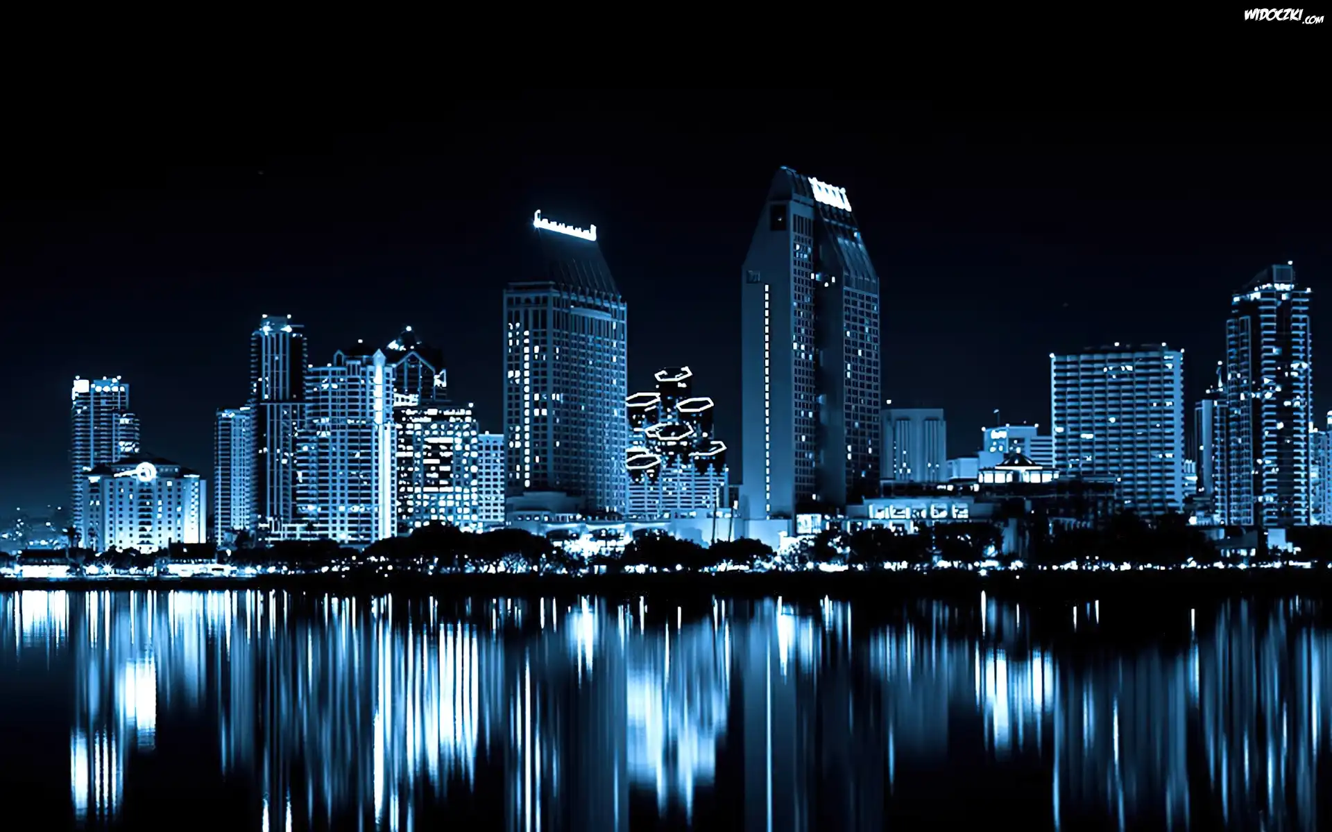 Zdjęcia, Podświetlone, Miasto, Nocą, Rzeka