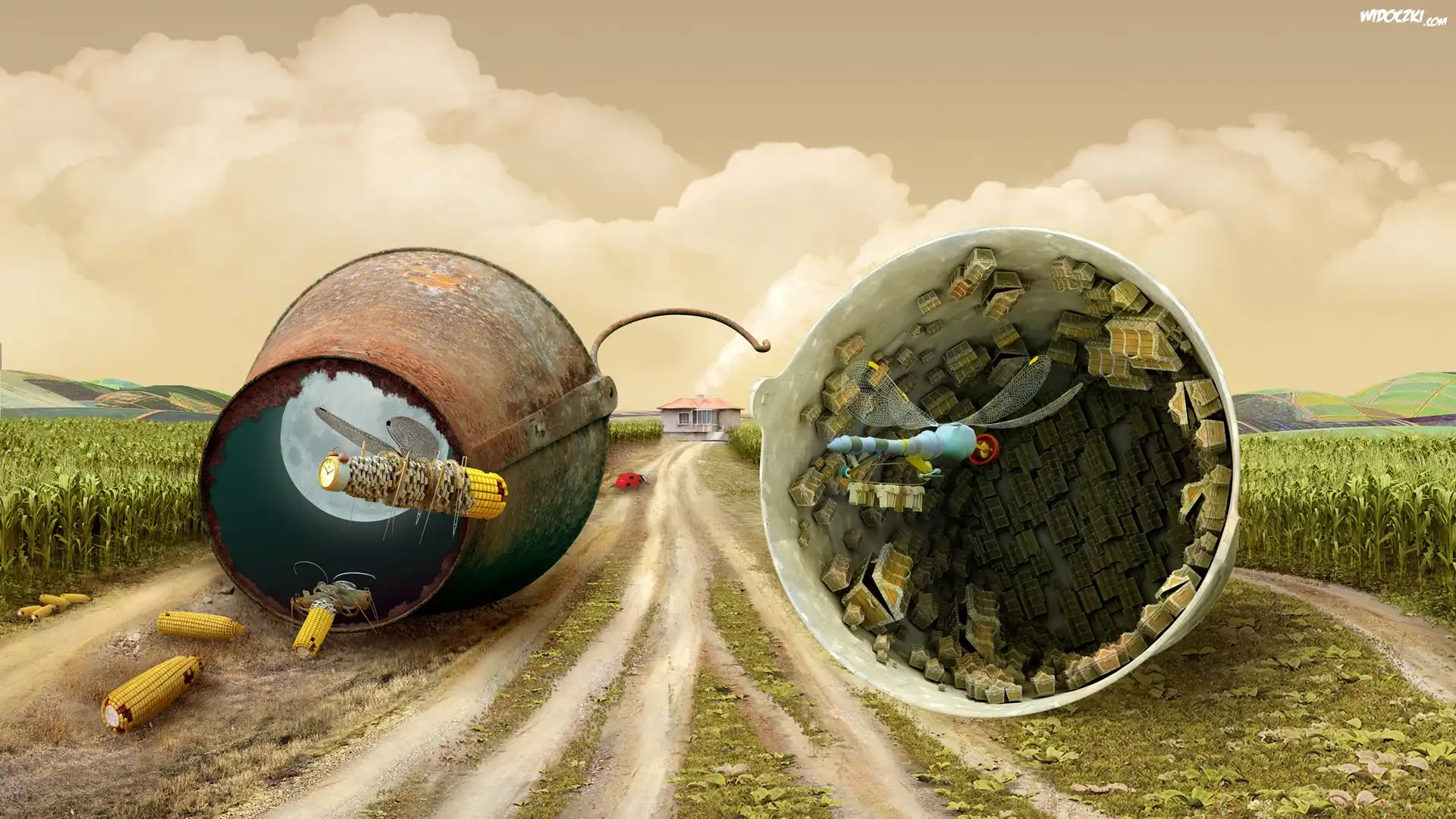 Zdjęcia, Pola, Kukurydzy, Droga, Wiaderka