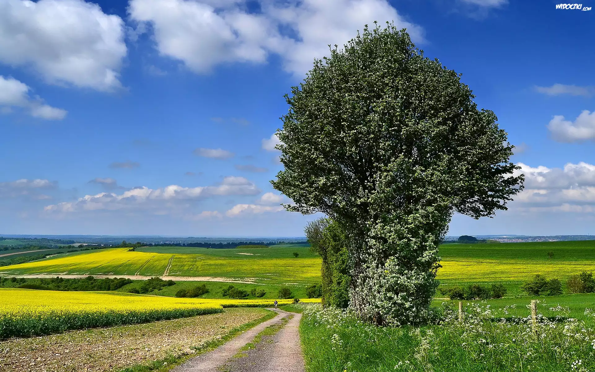 Zdj臋cia, Pola, Uprawne, Droga, Drzewo