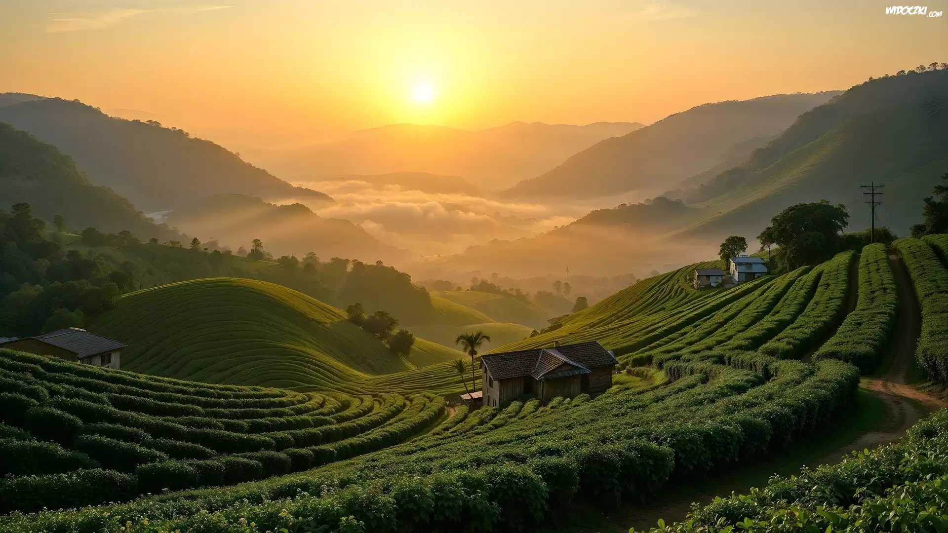 Plantacja, Pola, Góry, Wschód słońca