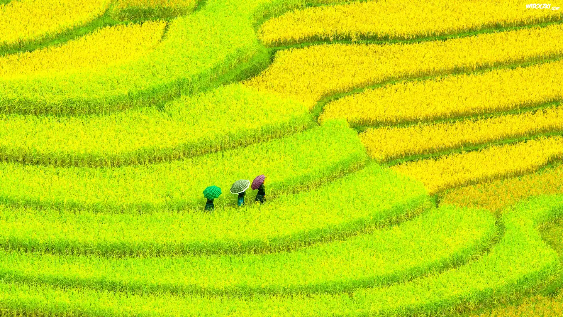 Pola, Tarasy rolne, Kobiety, Parasolki
