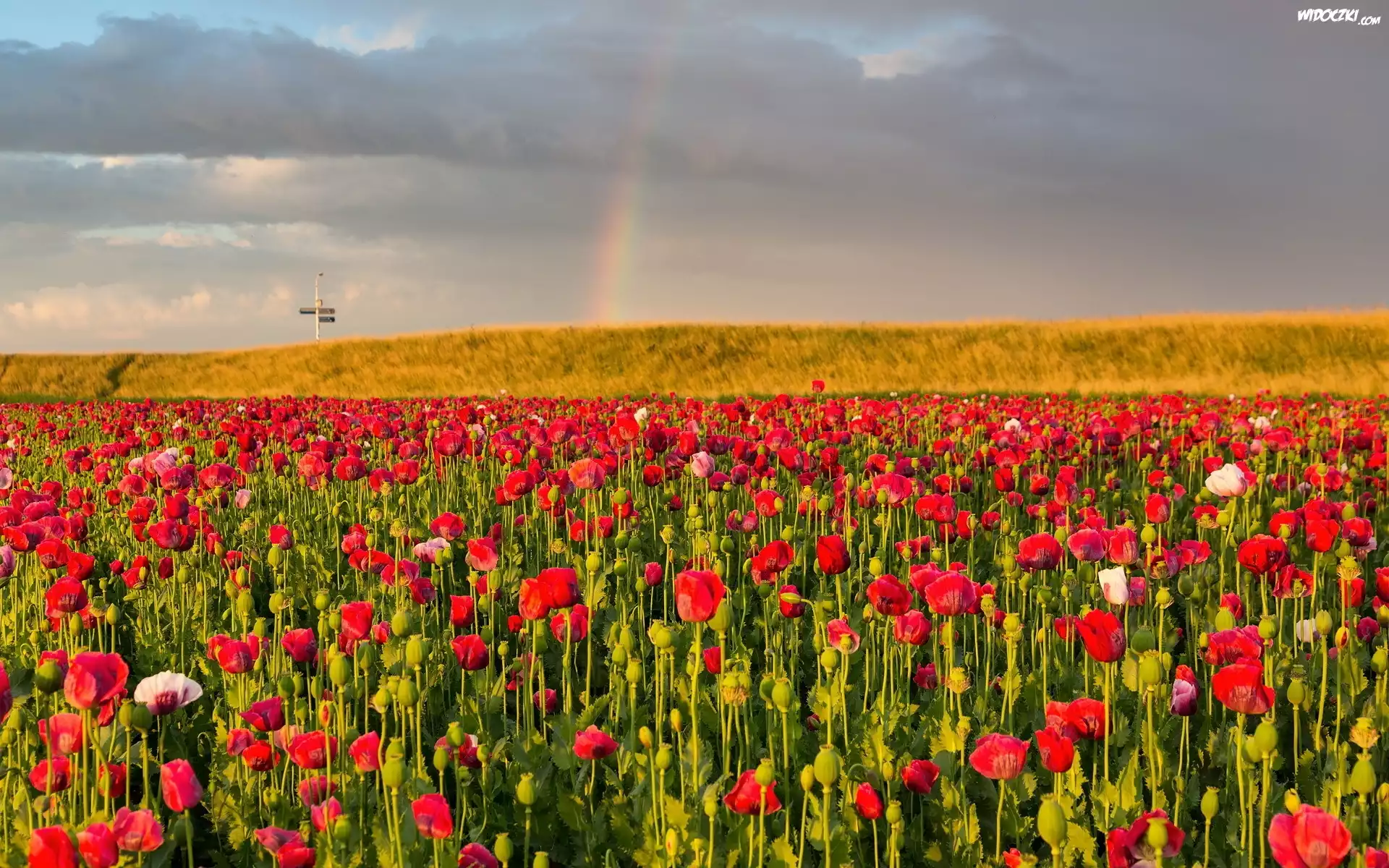 Zdjęcia, Maki, Pola, Tęcza