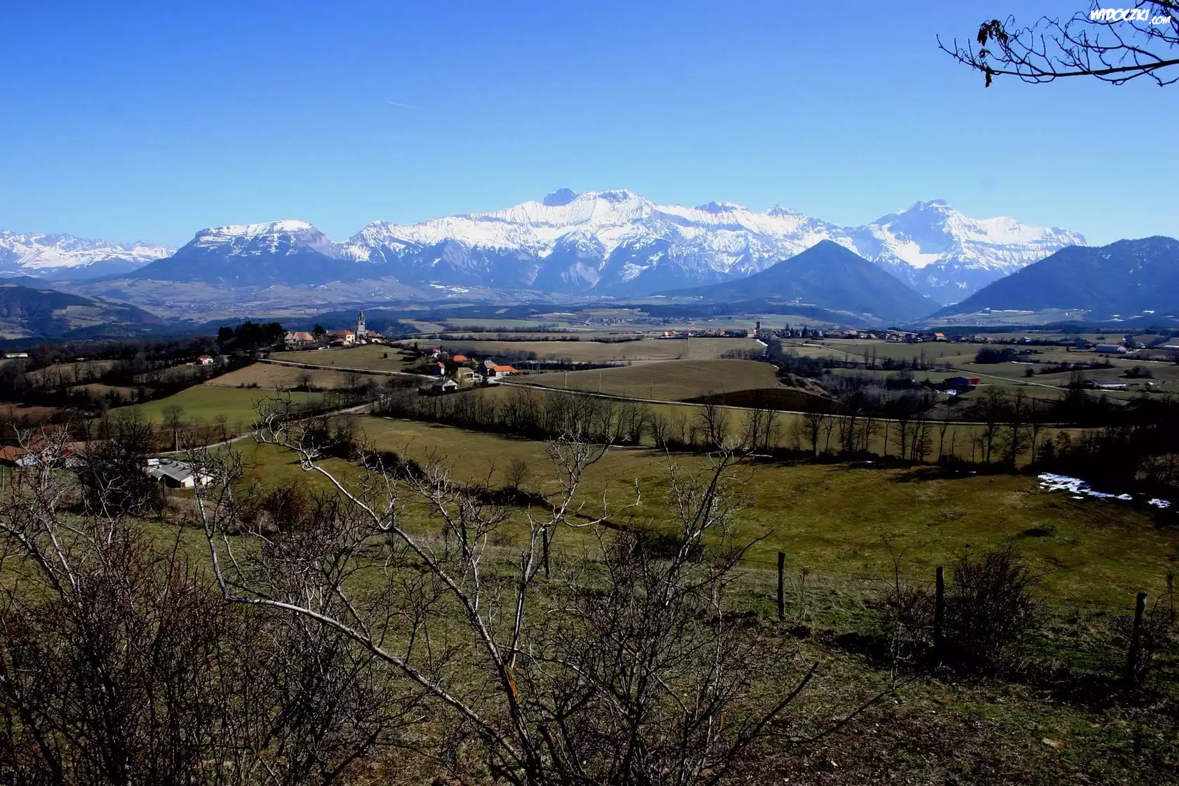 Zdjęcia, Pola, Góry, Ośnieżone, Szczyty