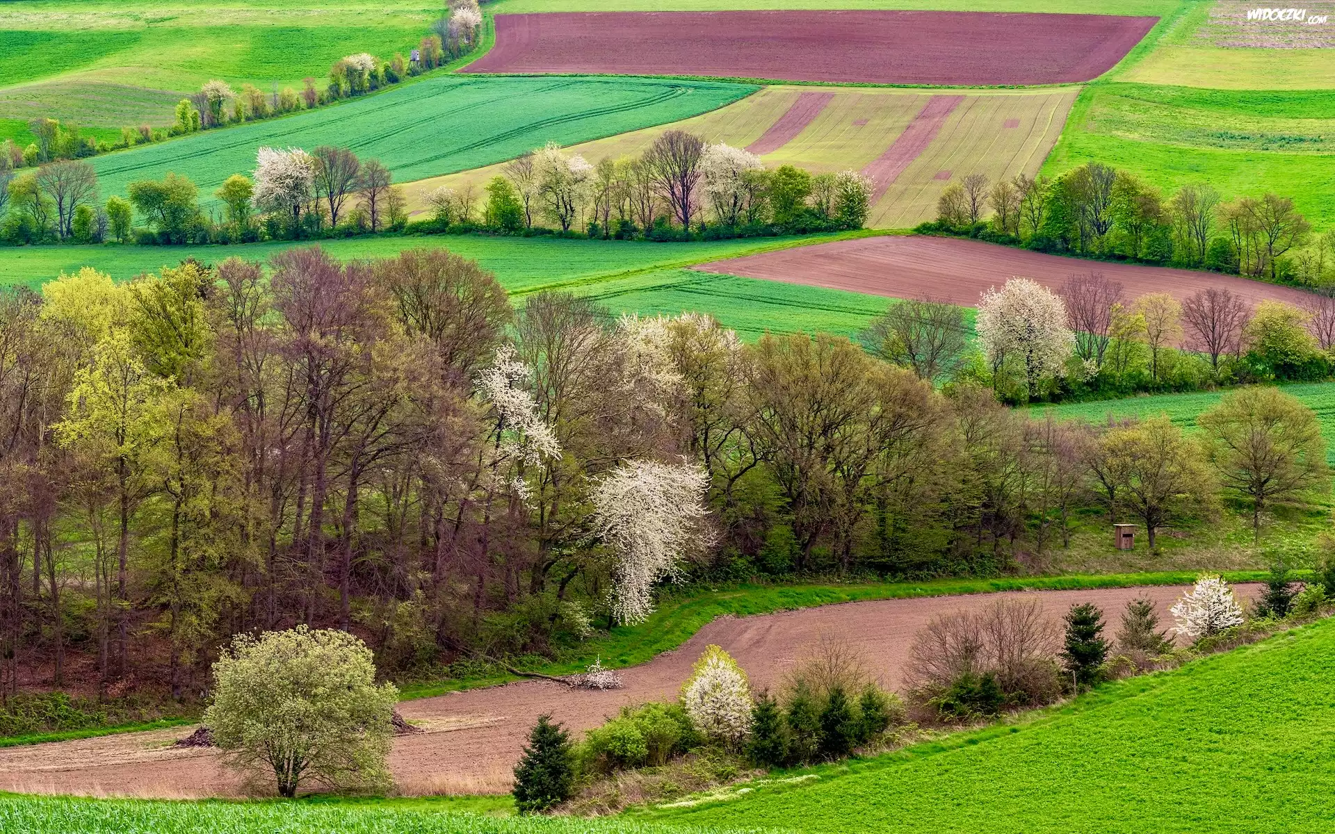 Zdjęcia, Pola, Drzewa, Wiosna