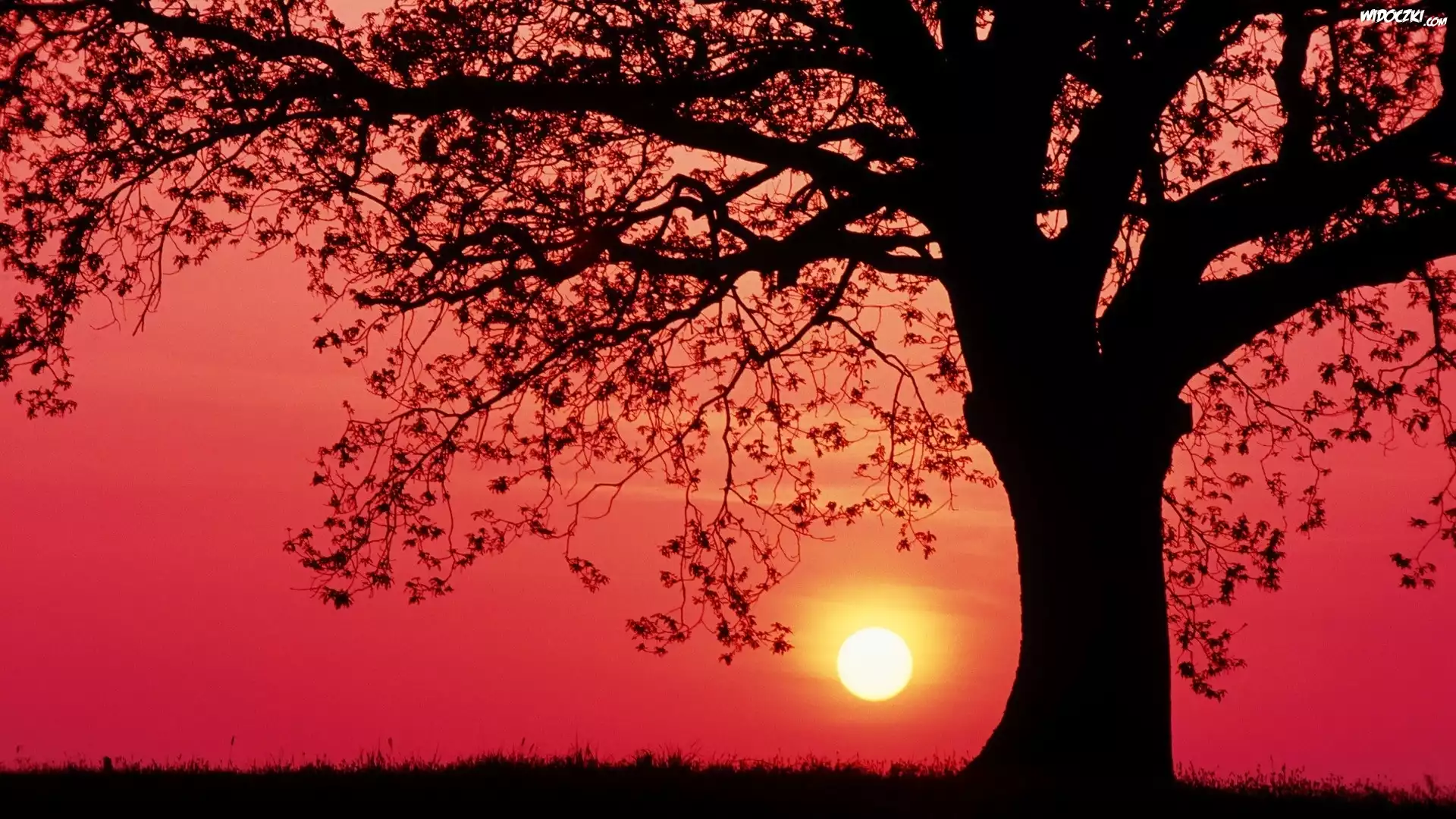 Zdjęcia, Pola, Drzewo, Zachód, Słońca