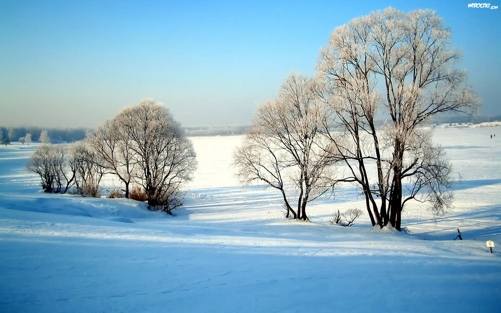 Zdjęcia, Zaśnieżone, Pola, Drzewa