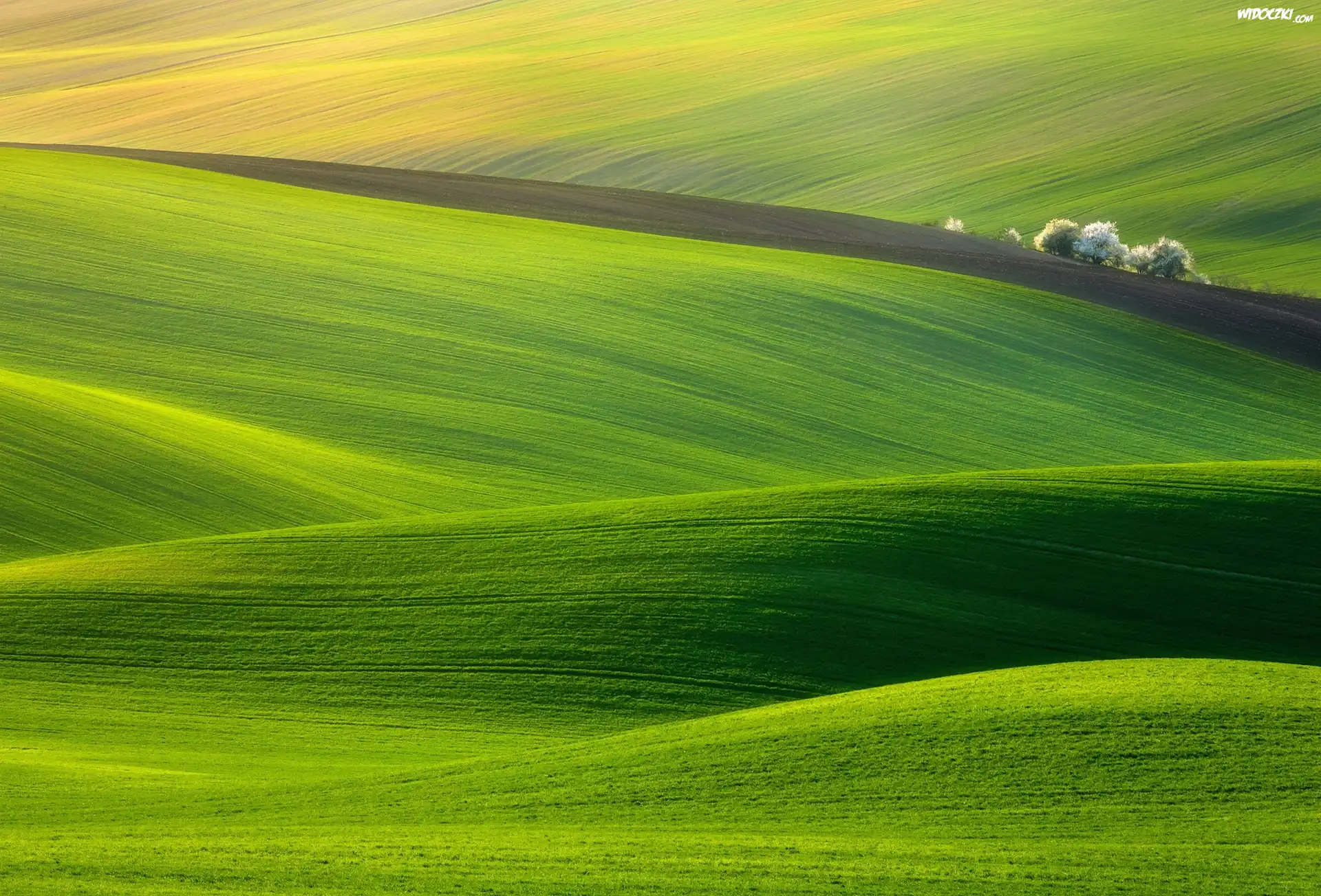 Zdjęcia, Pola, Trawa, Zieleń, Drzewa