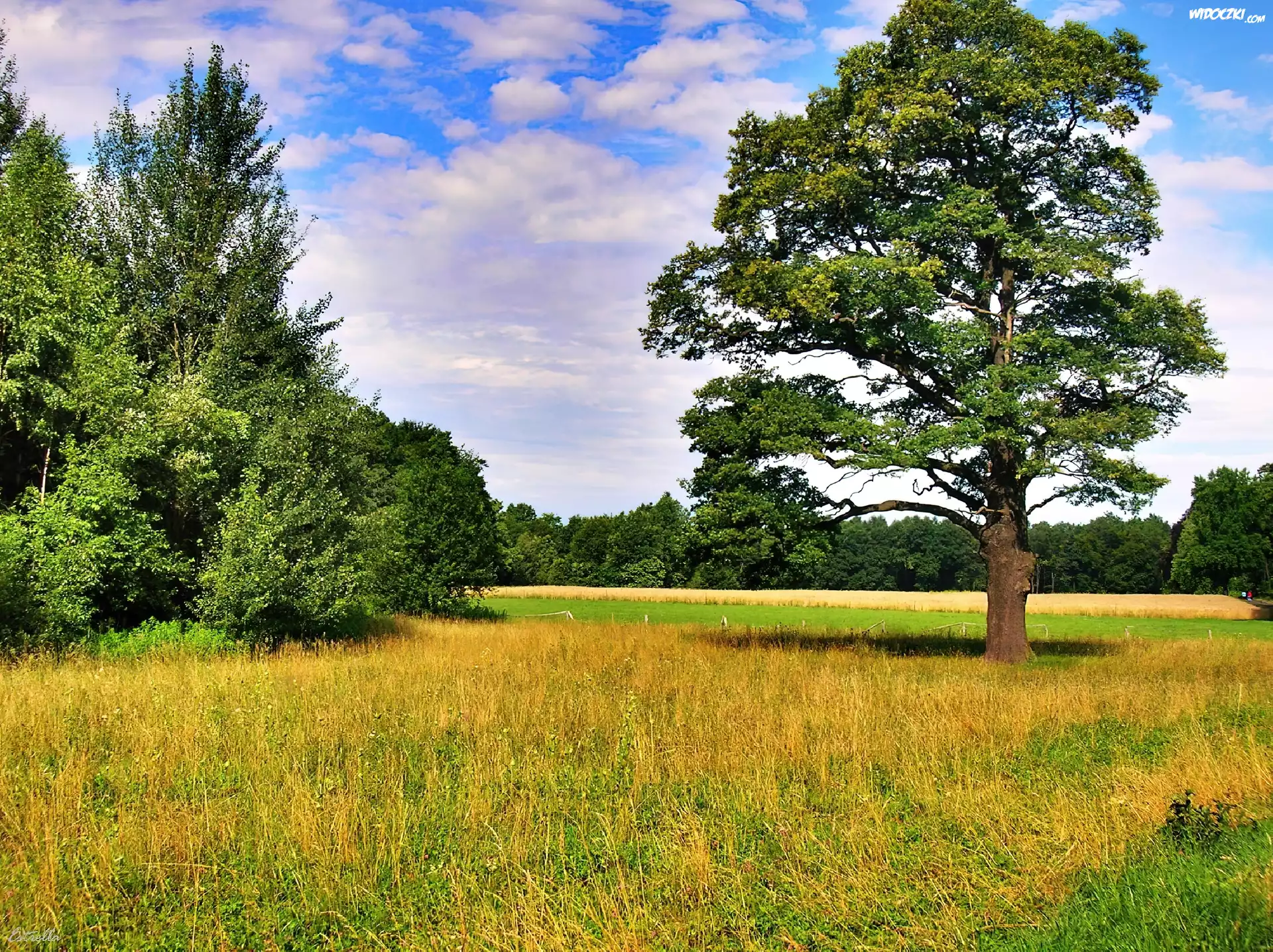 Zdjęcia, Drzewa, Polana, Chmury