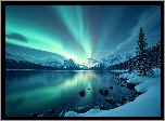 Zdjęcia, Zorza polarna, Śnieg, Góry, Jezioro