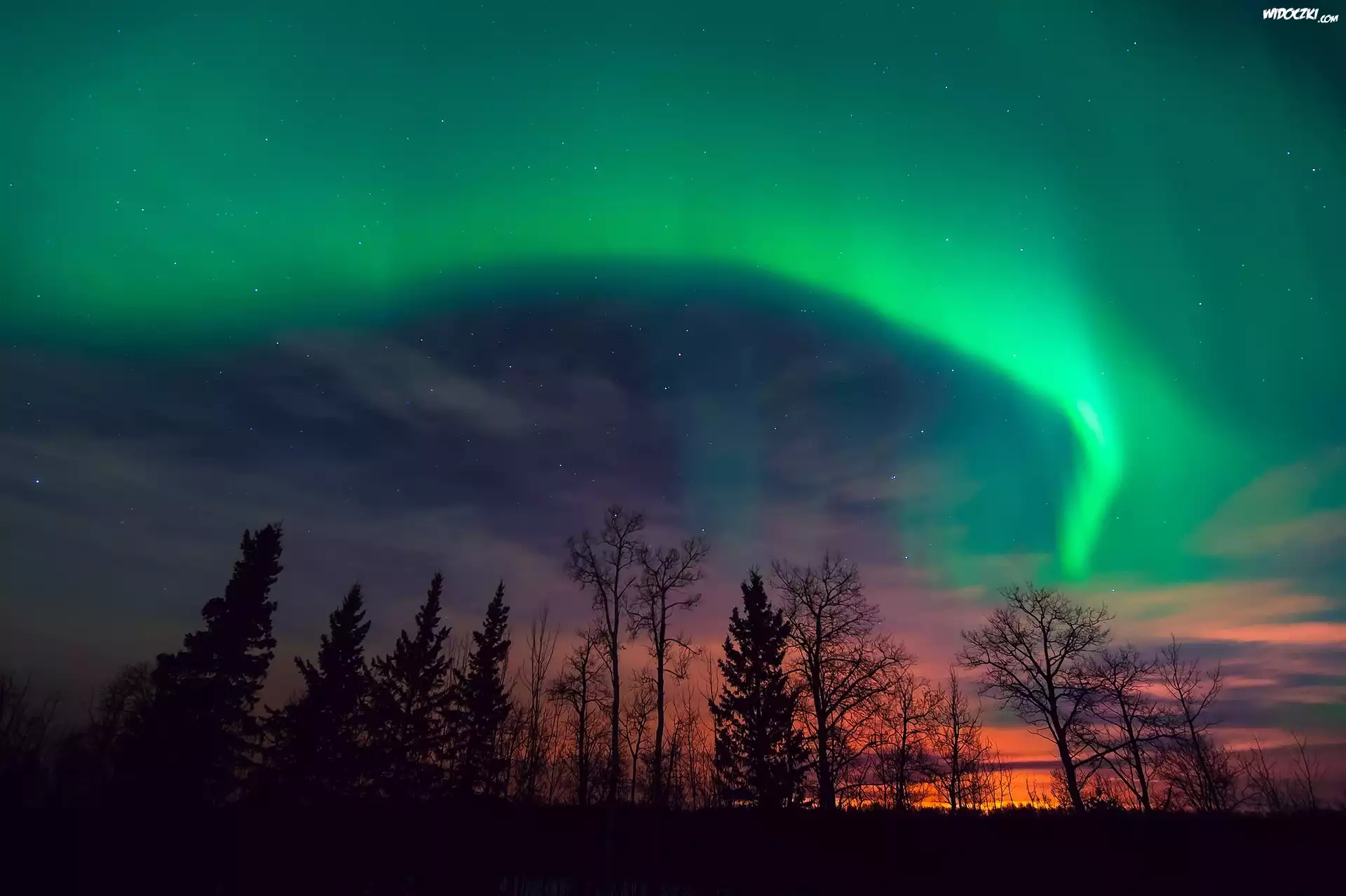 Zdjęcia, Zorza, Polarna, Drzewa