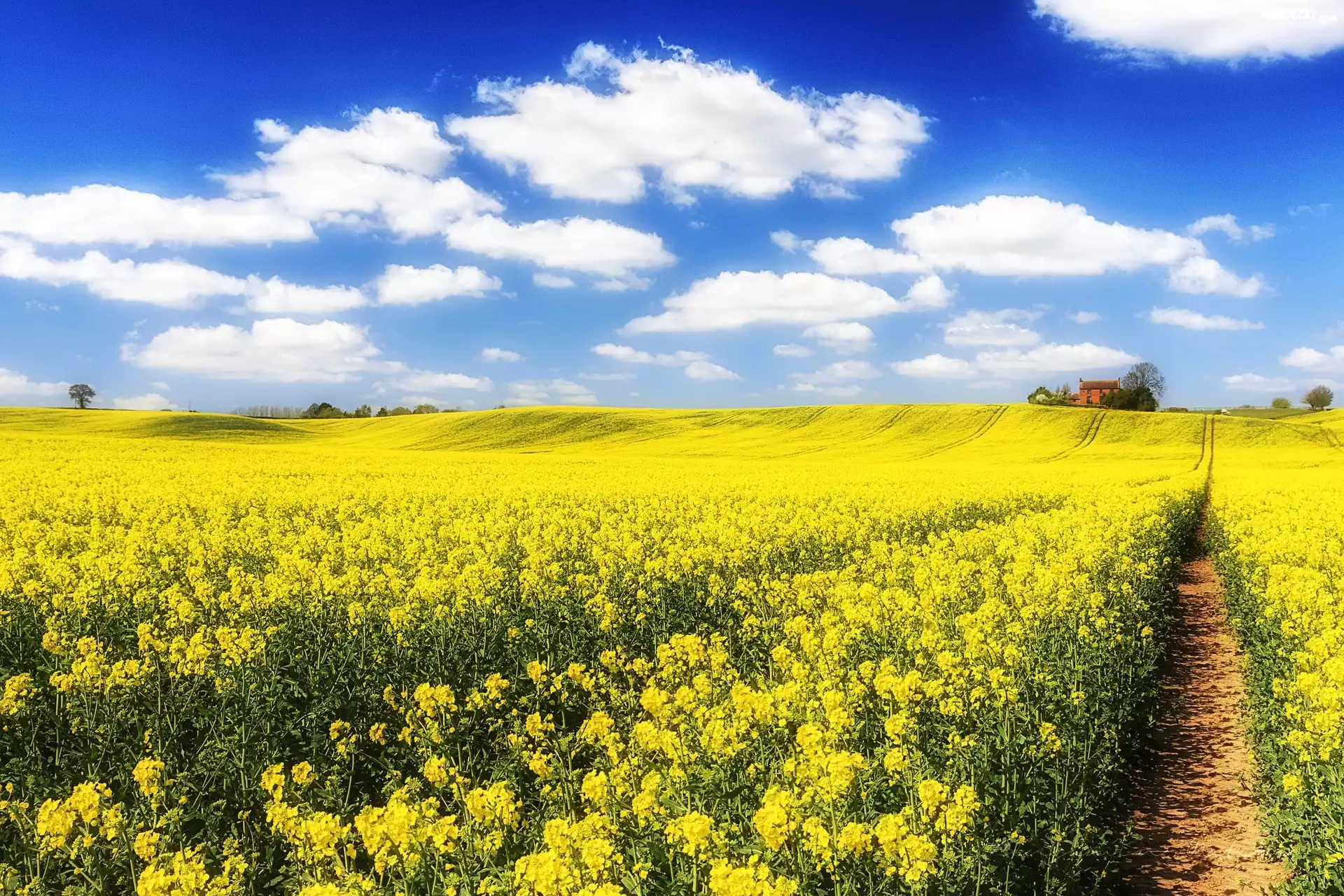 Pole, Rzepak, Budynki, Dróżka