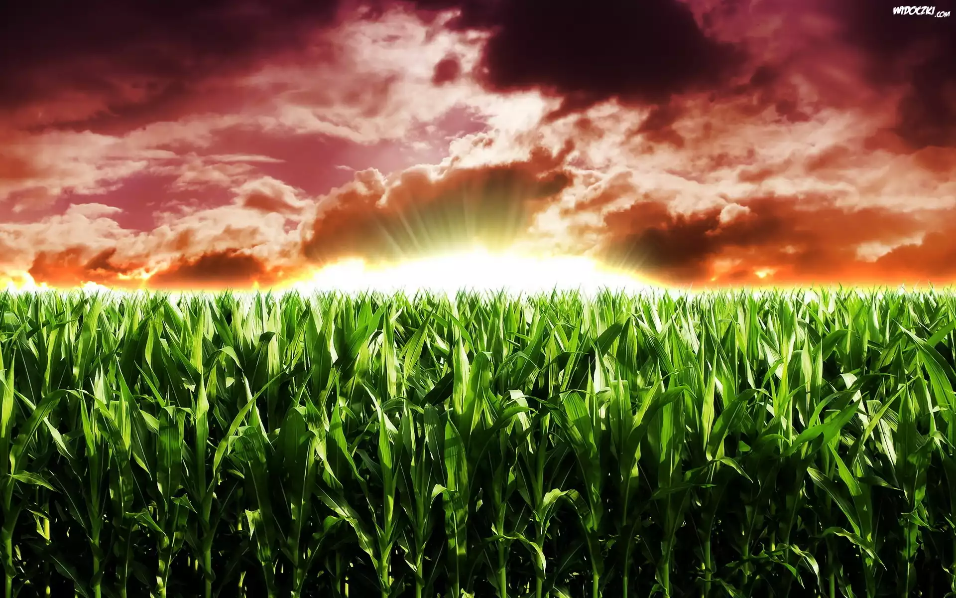 Zdjęcia, Pole, Kukurydzy, Chmury, Słońce