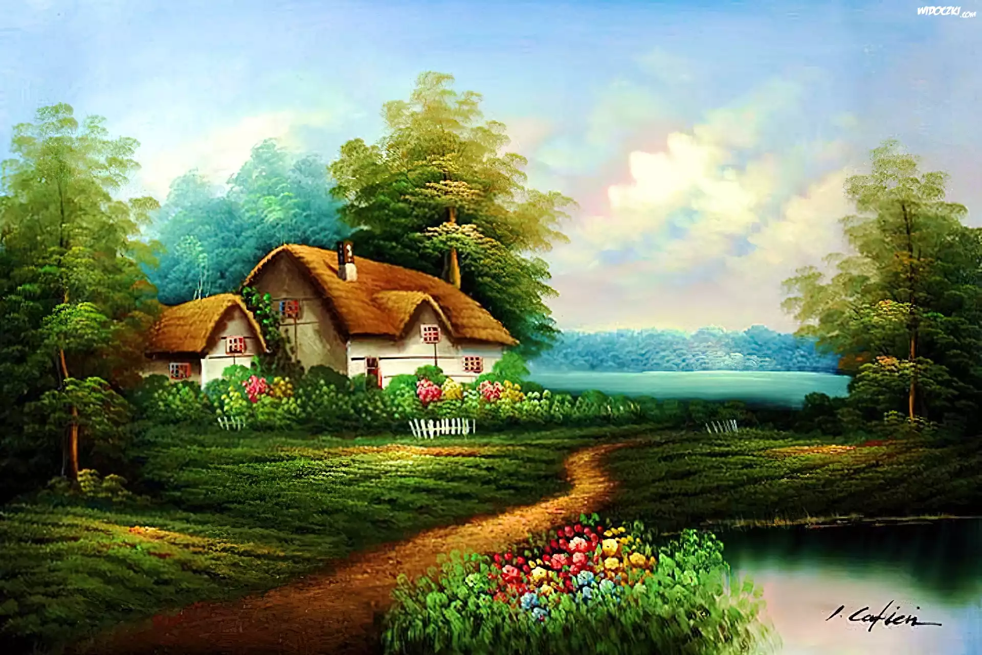 S硂wenia, Jezioro Bled, Wyspa, Ko禼i蟪, G髍y, Mg砤 Park, Most, Drzewa Morze, Wybrze縠, Ska硑, Domek Zima, G髍y, Mg砤 Norwegia, Fiord Geirangerfjorden, Zbocza, Wodospady, Statek Zach骴, S硂馽a, Jezioro, Drzewa Park, Trawa, Kwiaty Park, Latem, Pomara馽zowe, Kwiaty Drzewa, Rzeka, 1ka