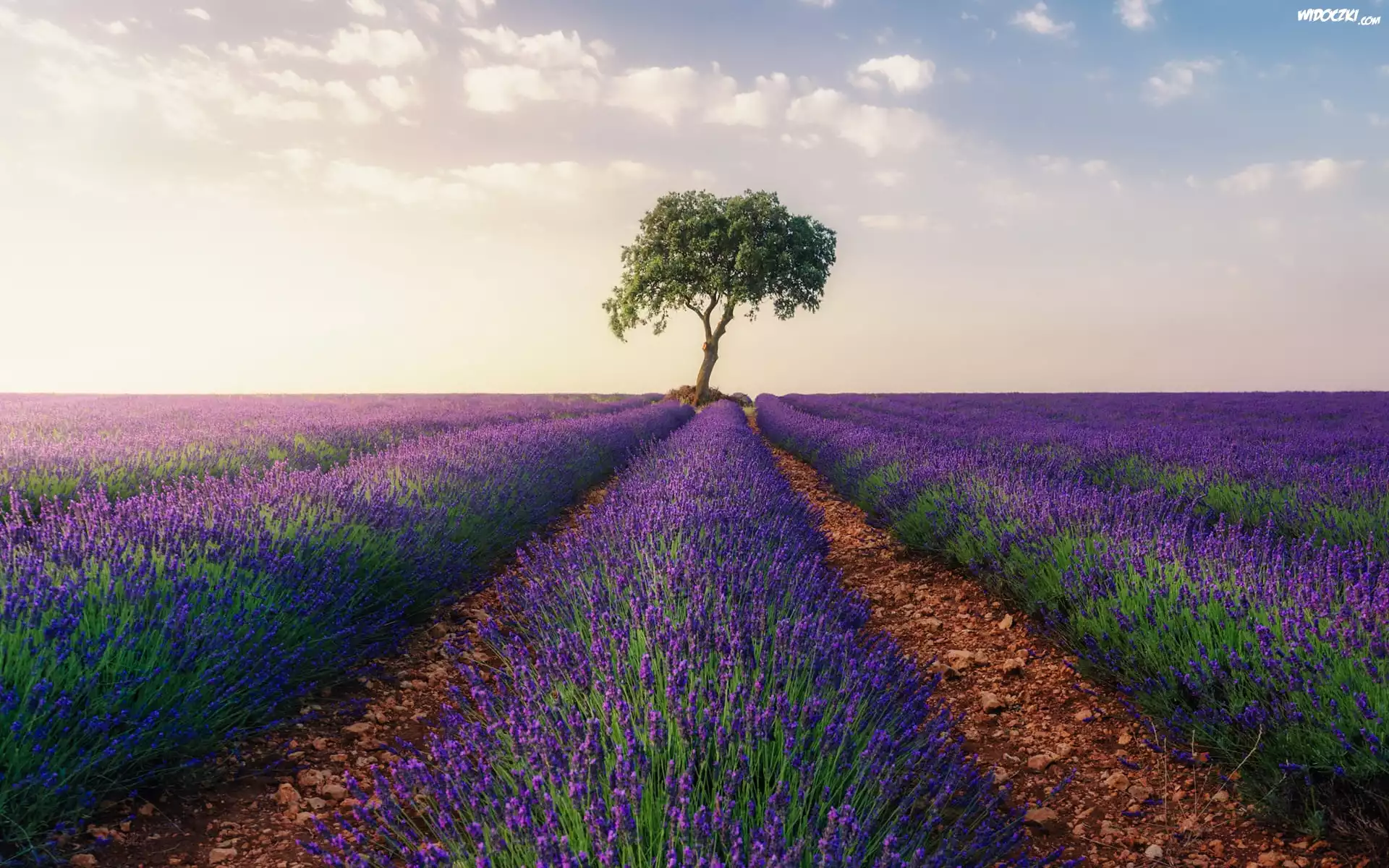 Hiszpania, Brihuega, Guadalajara, Pole, Lawenda, Drzewo