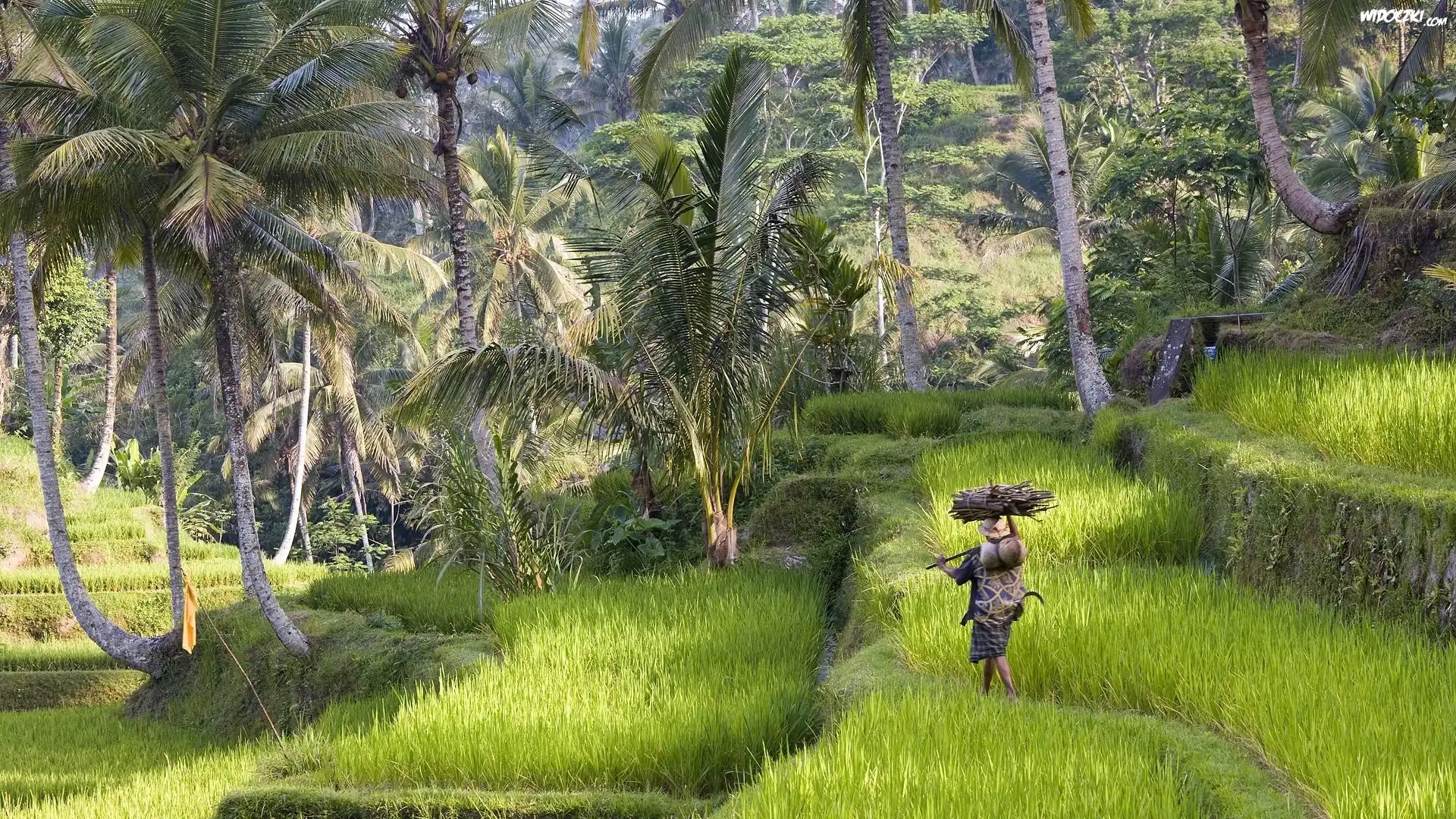 Zdjęcia, Pole Ryżowe, Kobieta, Palmy