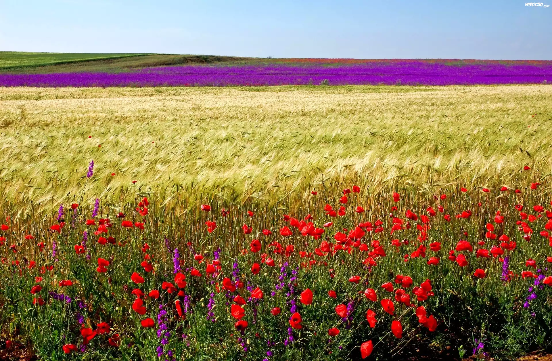 Pole, Zboże, Kwiaty, Maki