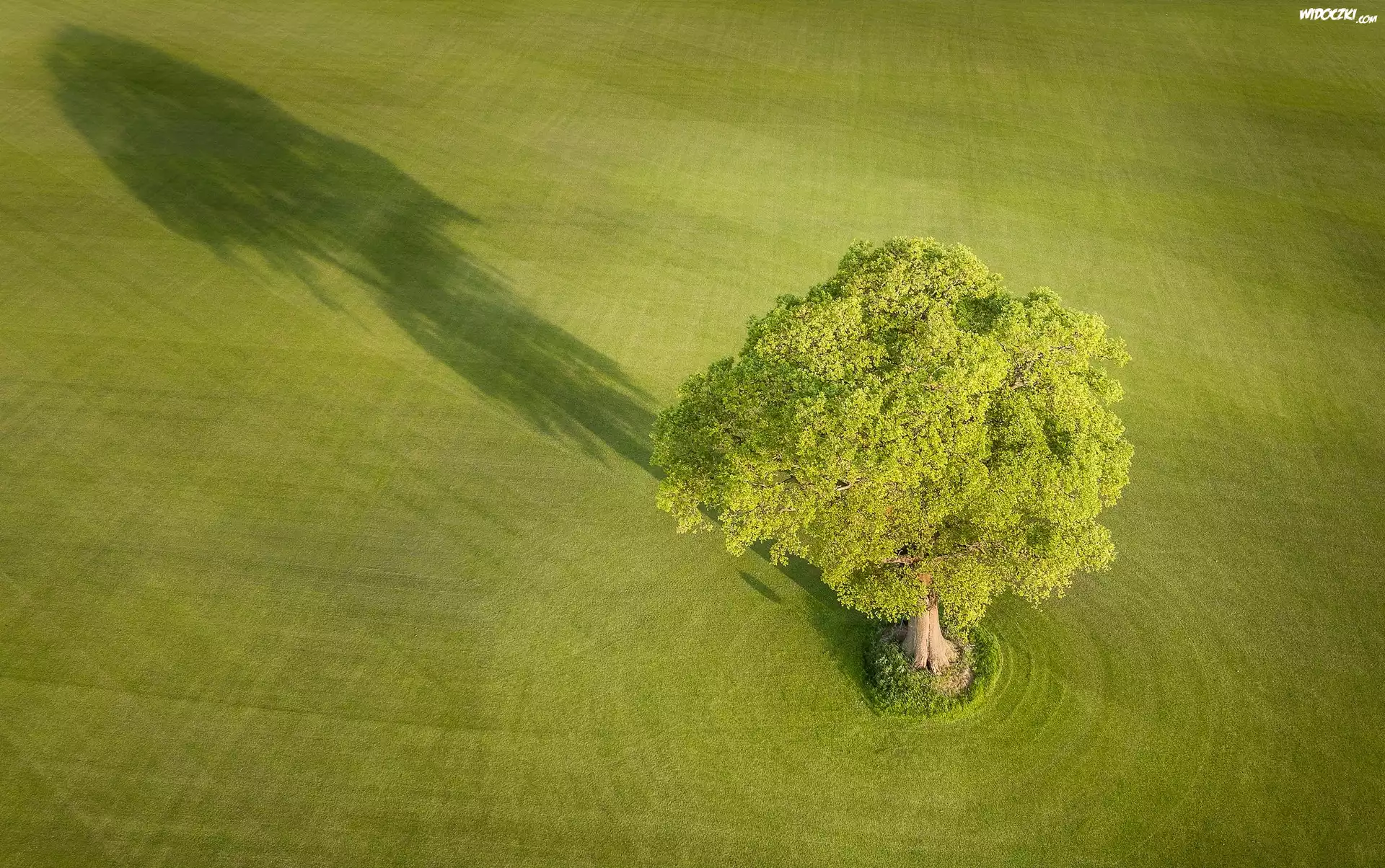 Pole, Drzewo, Cień, Z lotu ptaka