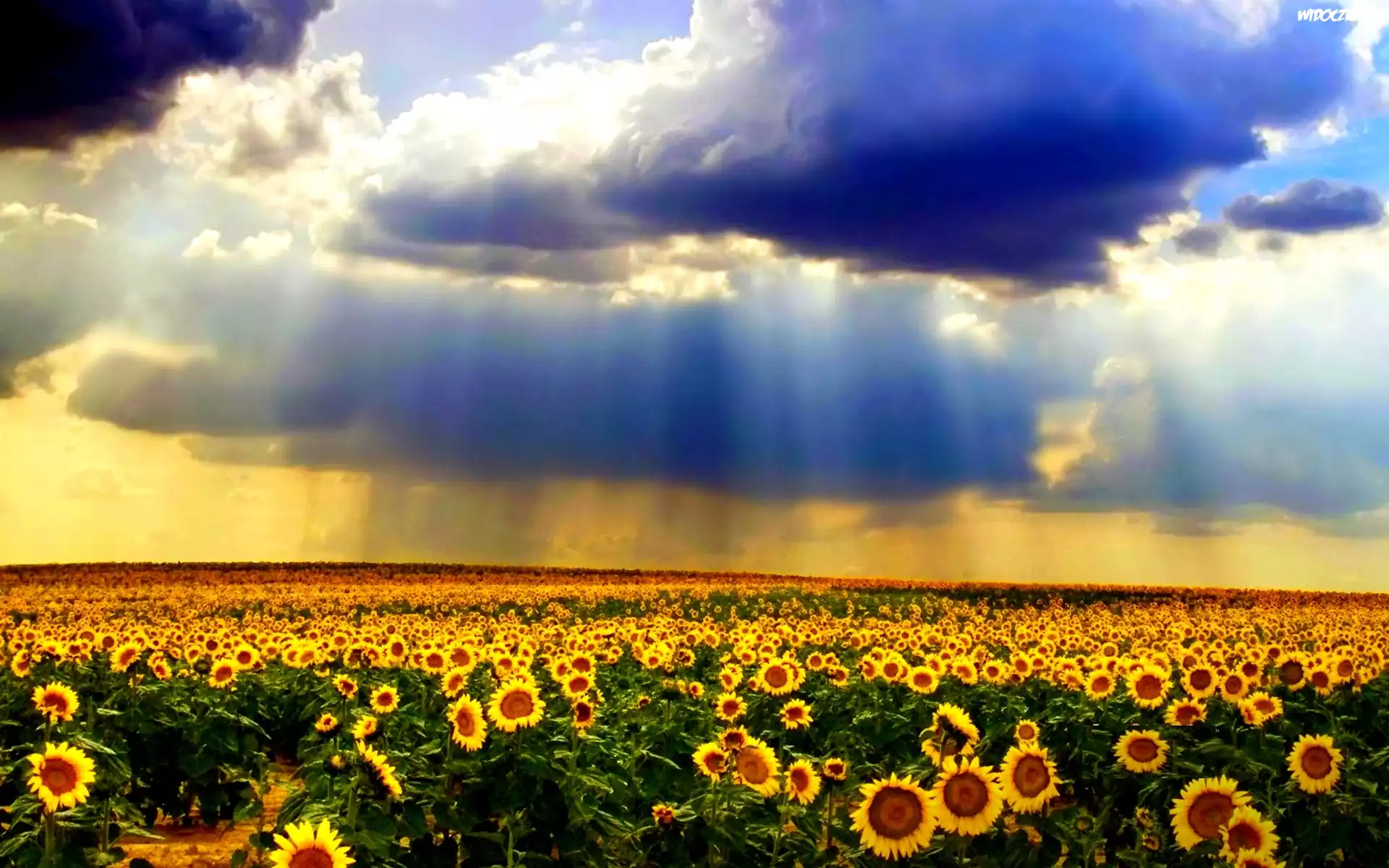 Pole, Słoneczniki, Niebo, Chmury