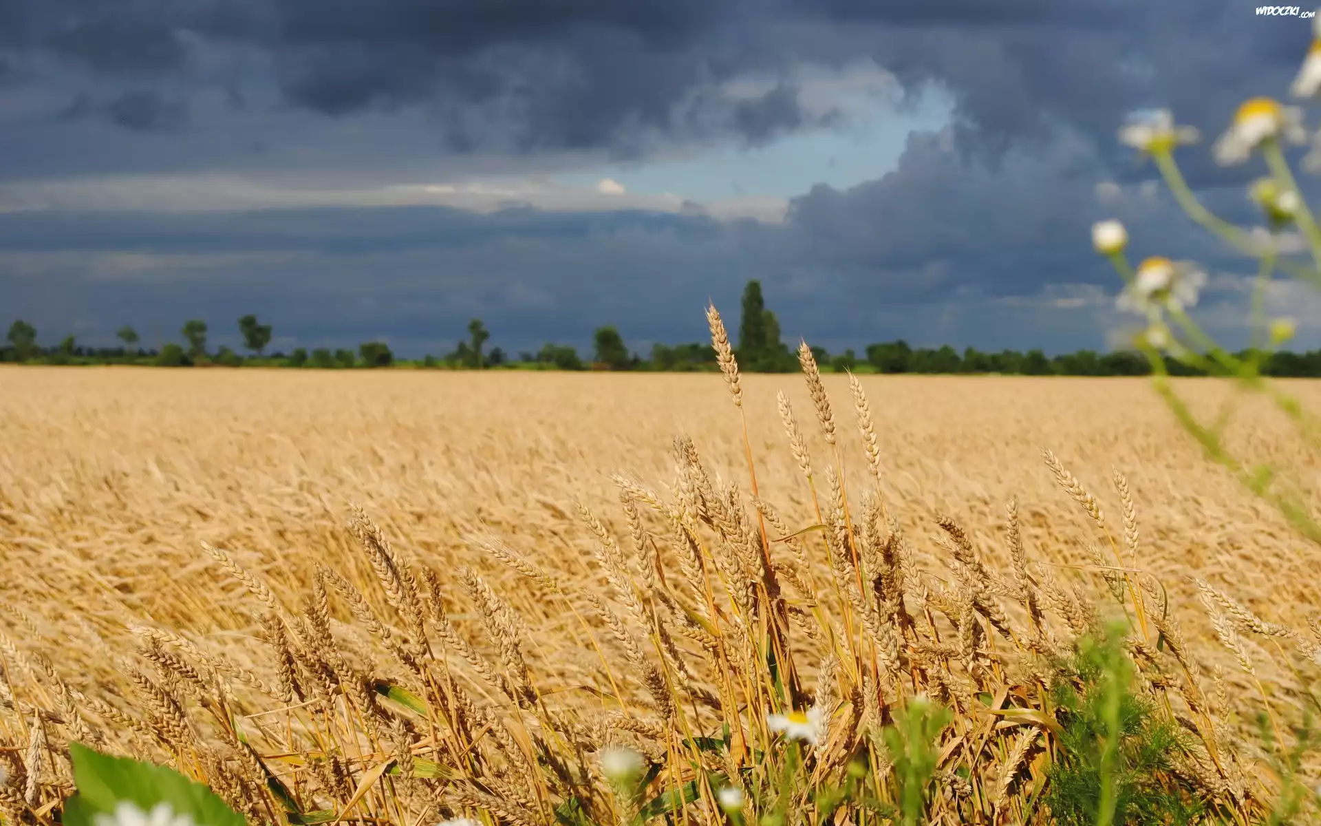 Zdjęcia, Pole, Zboże, Niebo, Chmury