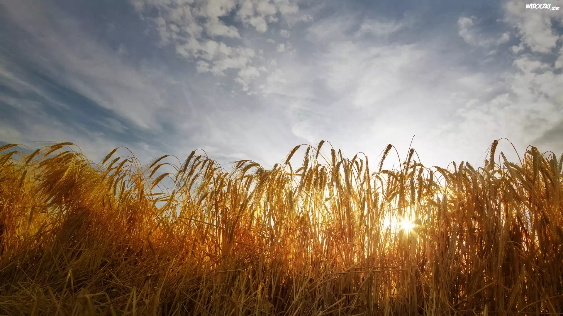 Zdjęcia, Pole, Zboże, Pszenica, Niebo, Promienie Słońca
