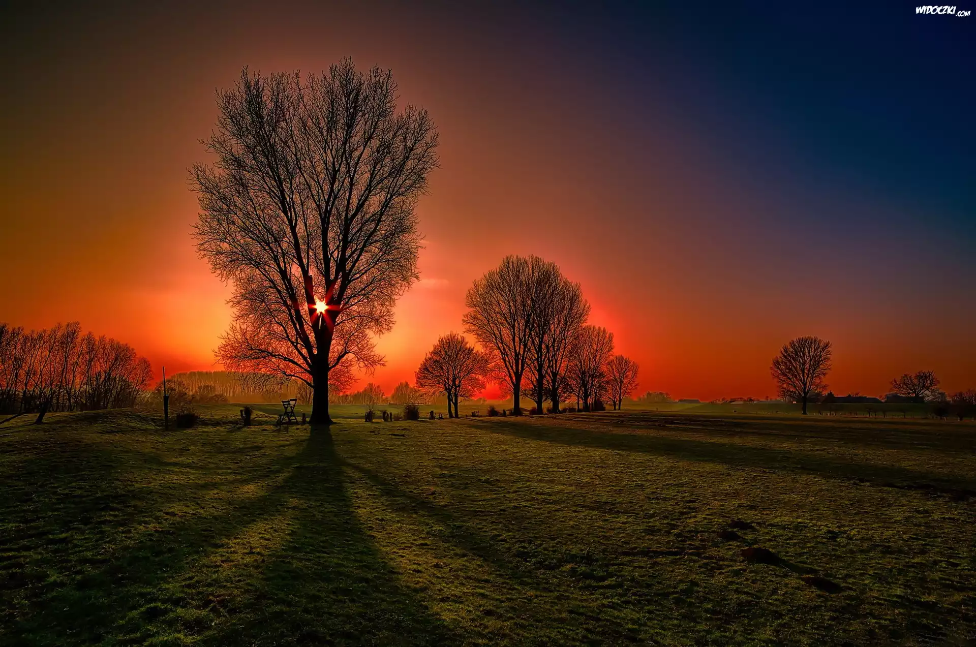 Pole, Zachód Słońca, Drzewa