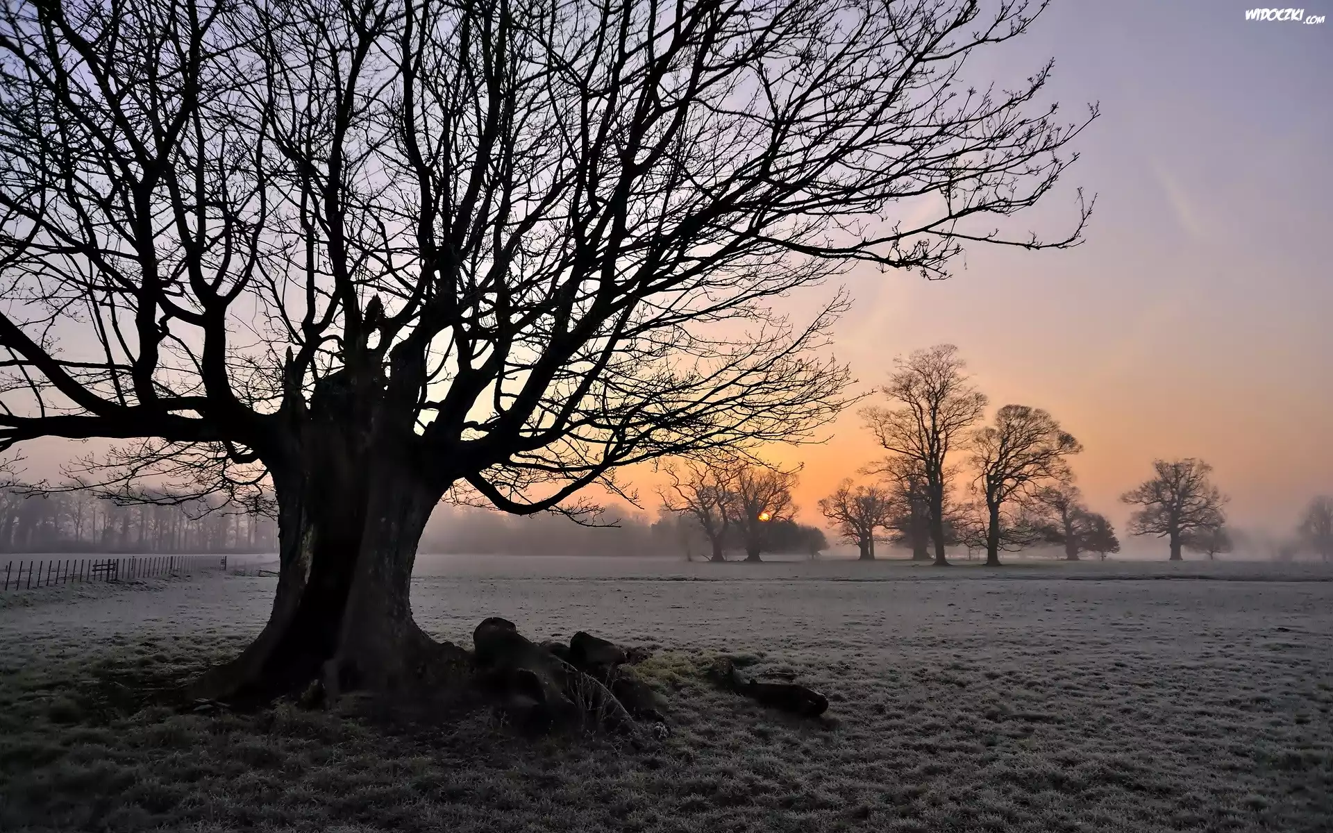 Zdjęcia, Pole, Drzewa, Zachód Słońca